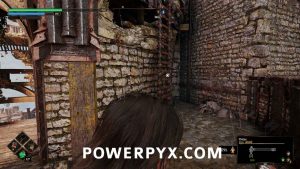 On the ground floor, head towards the eastmost tower and in the hall before the door opened with 2 switches, look at the wall to the southeast and you’ll see a bent metal grate where you can squeeze through.