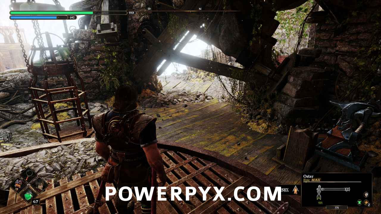 Head to the northernmost tower, where you had previously winched Adso up to a higher floor. Crawl under a beam to the other side, climb down a ladder and use the Soul Rune to open a hole in the wall.