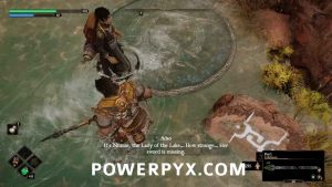 The answer is rooted in the actual myth of Nimue, The Lady of the Lake. Forge a greatsword and name it “Excalibur”, it doesn’t matter what metal you use or the number of stars you get, so just use your base materials. Equip the sword and approach her, hitting