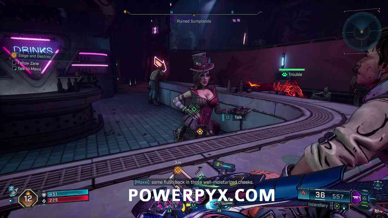 - Follow Zane + Optional Objective: Talk to Moxxi