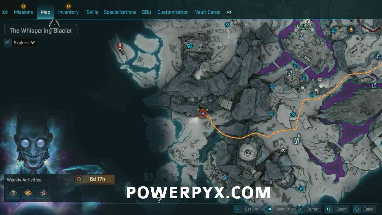- Starting Location: Kairos > The Whispering Glacier > Crooked Teeth