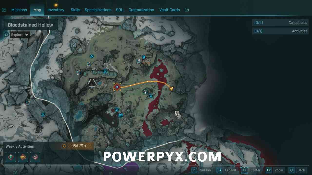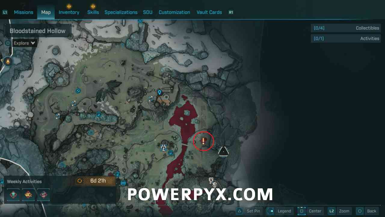 - Starting Location: Kairos > The Whispering Glacier > Bloodstained Hollow