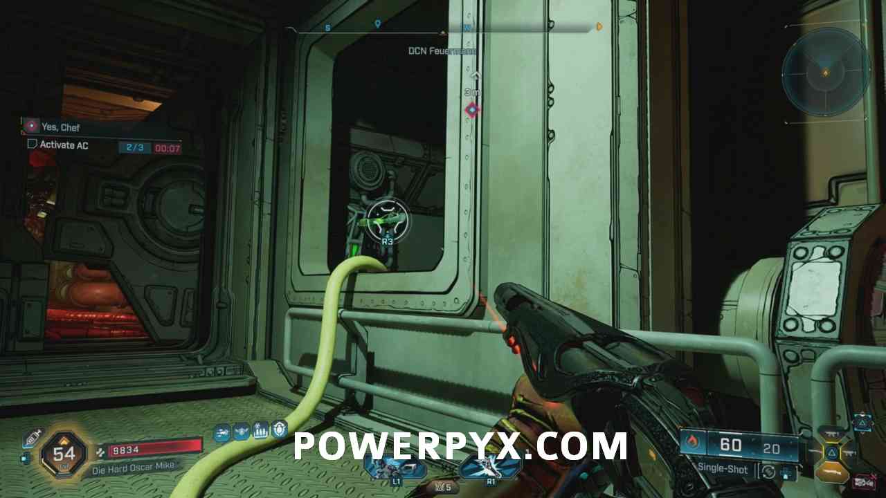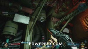 Then quickly shoot open the vent next to the lever and get through it. Then immediately turn right and look above you and use your grappling hook again on the second lever.