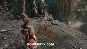 Key Item: Rock Crystal #1 – Take the rope down into the cave, and you can spot the first crystal on the left where the enemy is walking. Attack it to make the pickup appear.