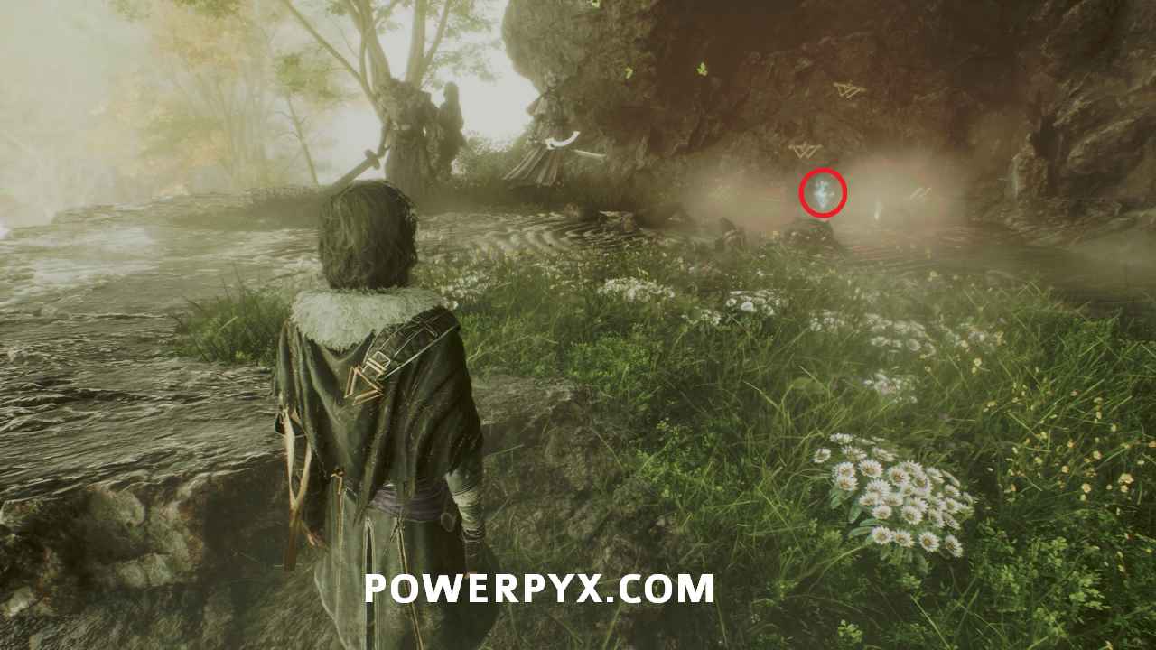 After going through the passage behind the Fading Woman, this is immediately in front of you in the open area before going to the left to continue to the next flag “Ancient Bridge”.