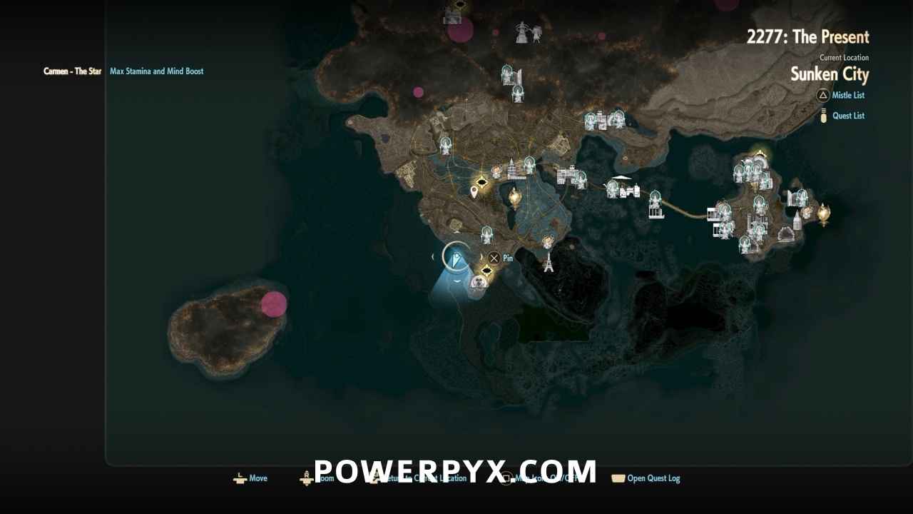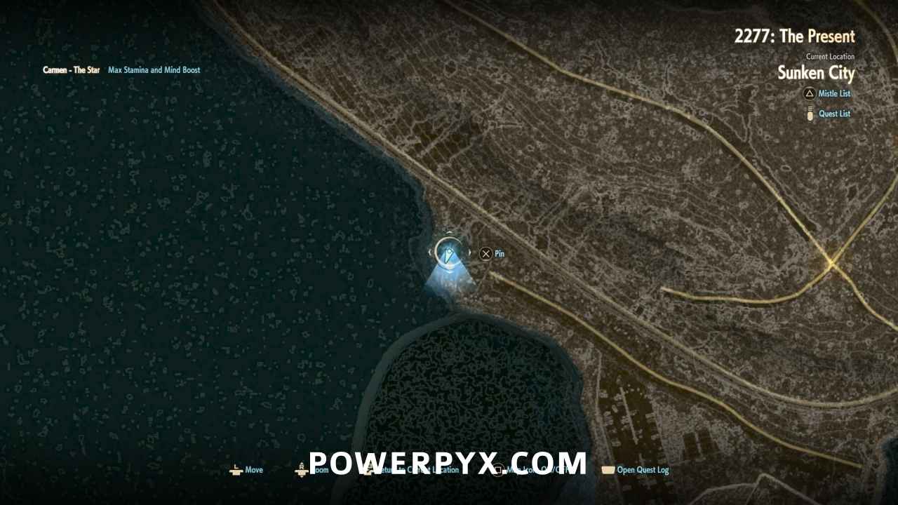 From the West Coast Pier Mistle, follow the road leading South-East and then go to the edge of the cliff near the dungeon in the South area.