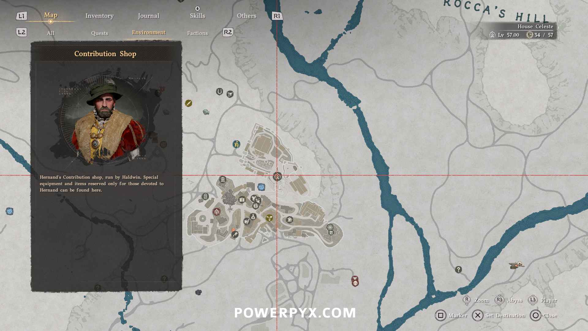 Contribution Shop #1: Hernand Castle – wear the Hernandian Attire to be let through the gate into the castle. Then enter the little guard tower of the inner courtyard to find the vendor.