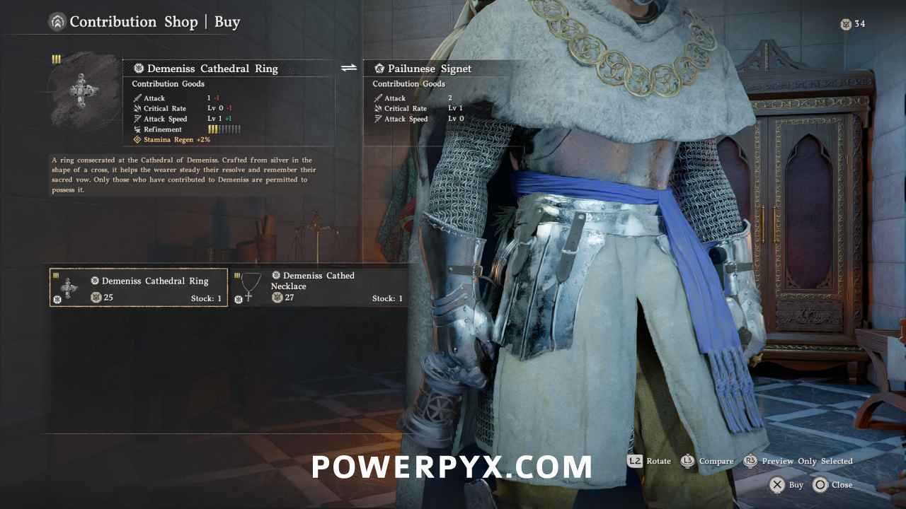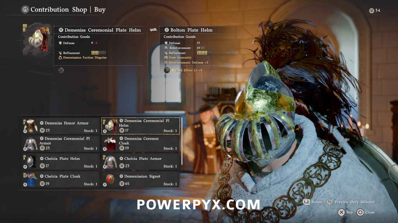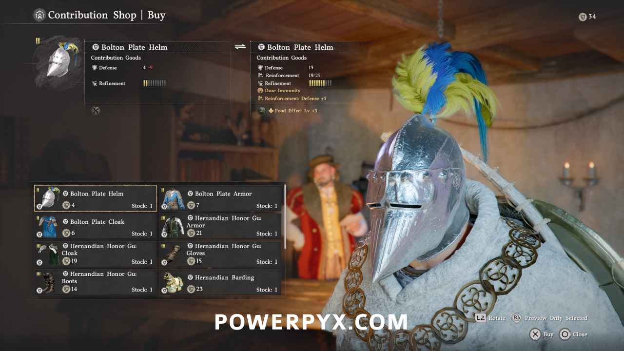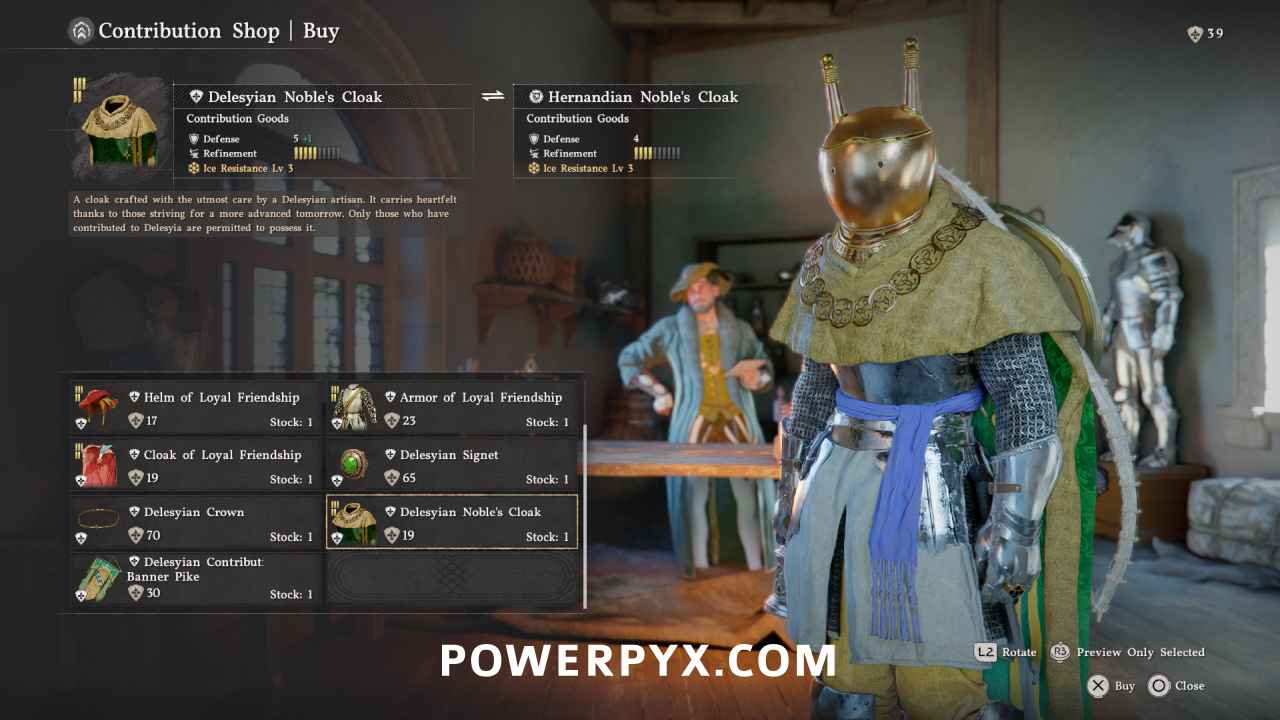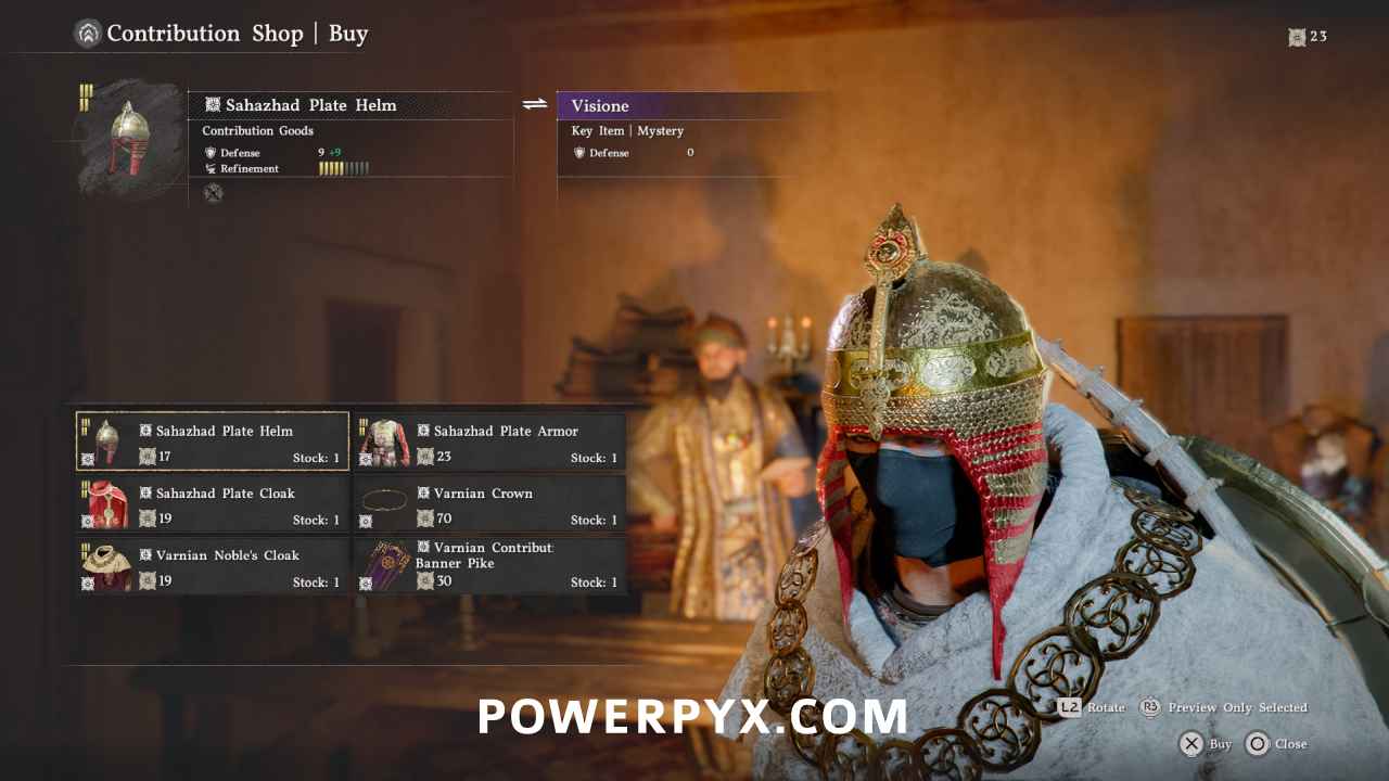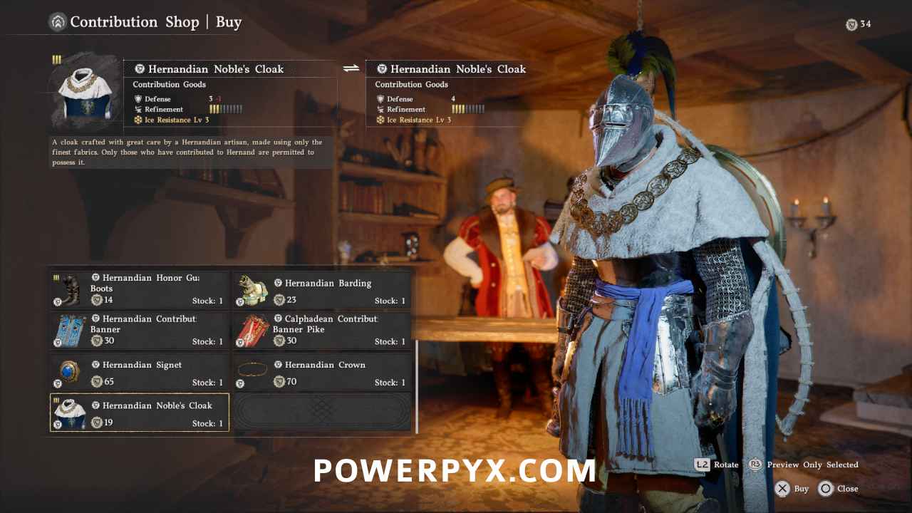 There are 9 Faction Contribution Shops in Crimson Desert for the 5 different factions. Each Faction lets you gain Repuation Points by doing quests for them. The Reputation Points can then be exchanged at the Faction Merchants for their exclusive armor pieces. The faction items don’t cost any money, only reputation, and can be traded back and forth freely to get your points back to spend them on other items. The faction items share largely the same base stats and are primarily cosmetic differences, but some offer more protection from certain elements (cold, hot weather etc).
