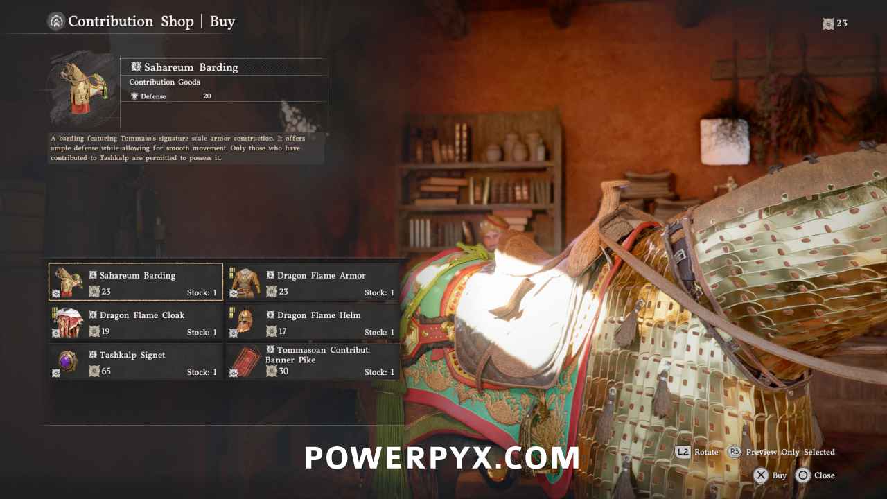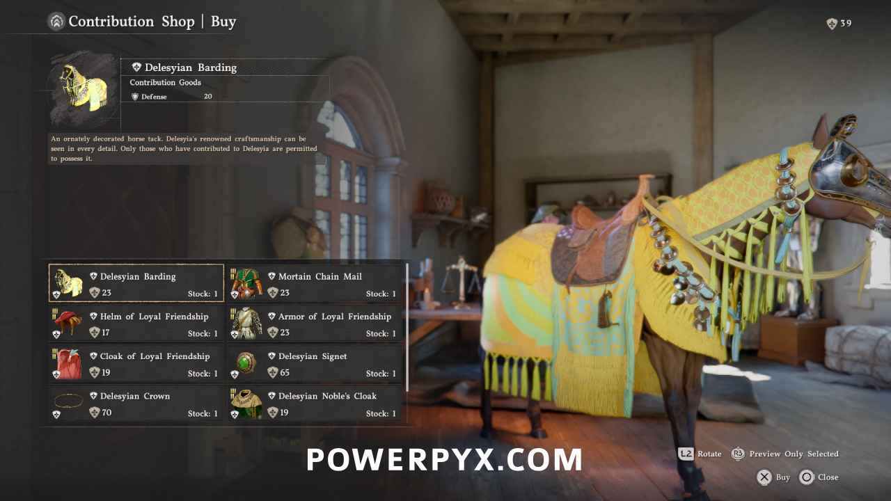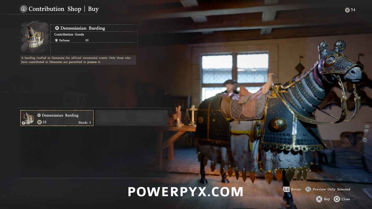 Contribution Shop #5: Demeniss City Horse Armor (Cobrin’s Shop) – in a house upstairs in Demeniss city.