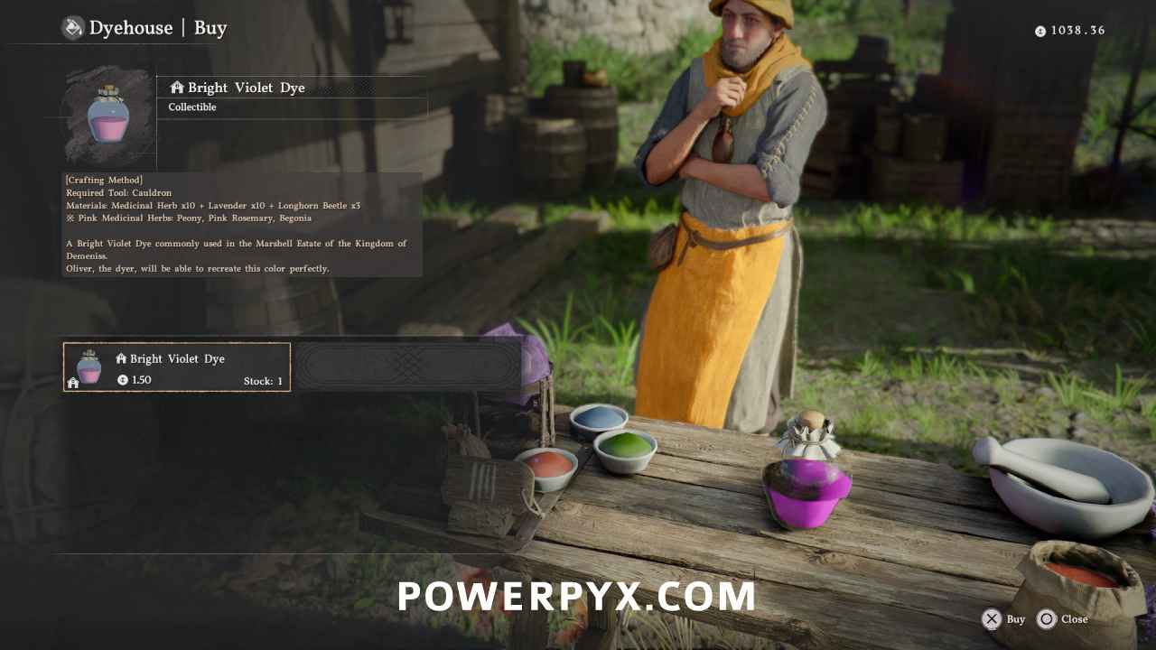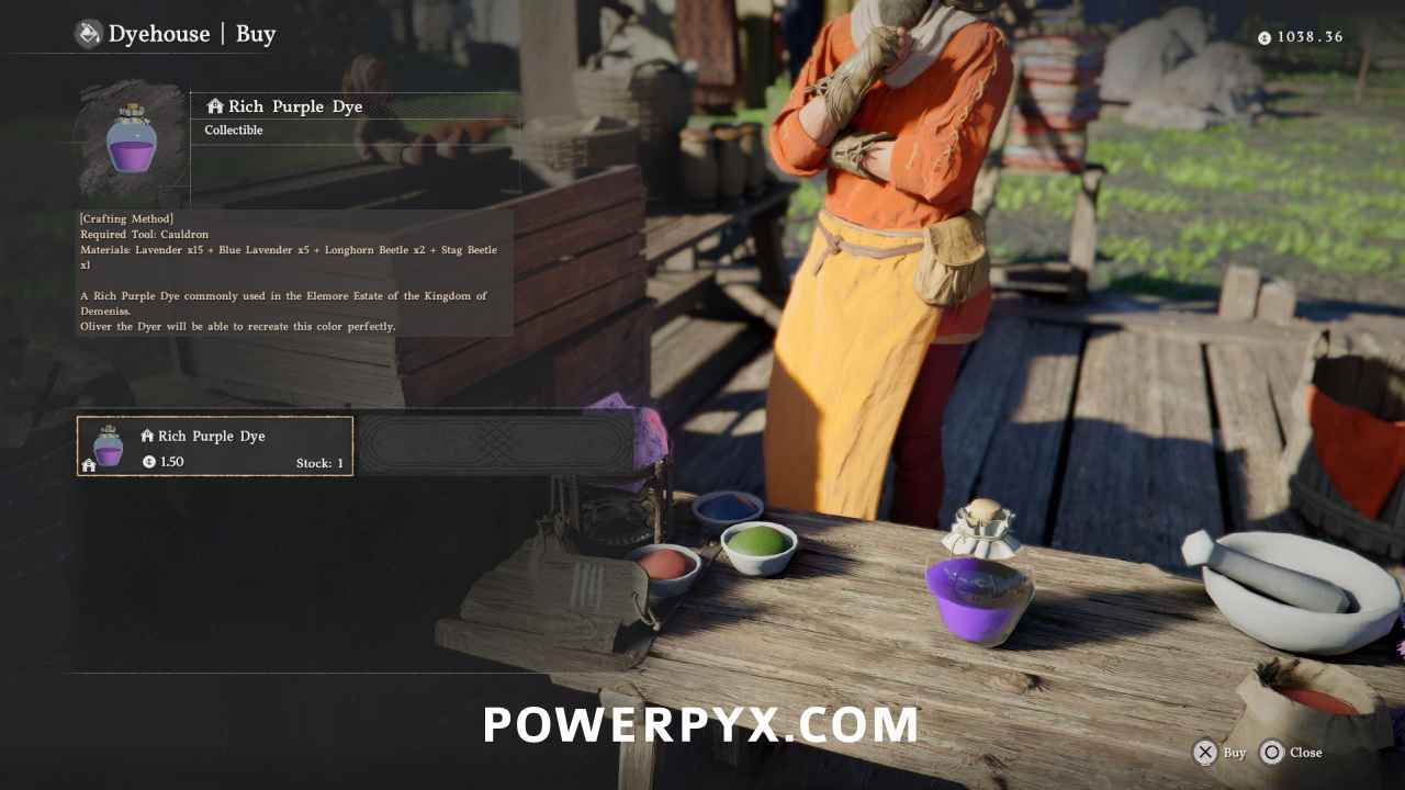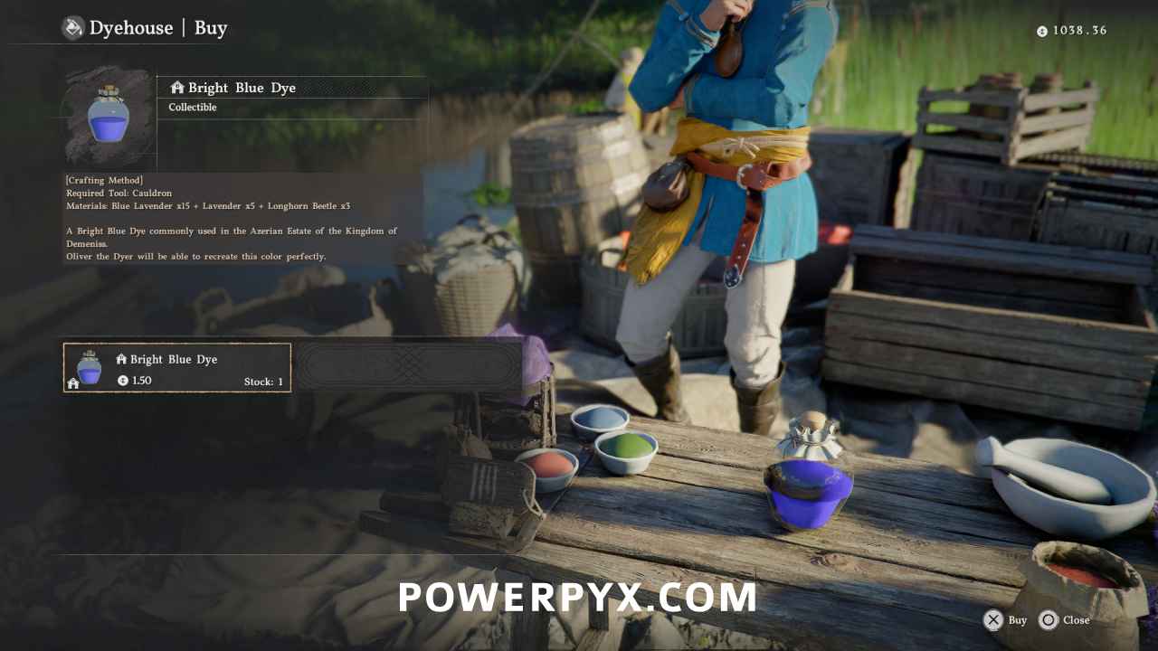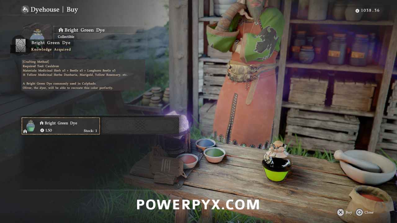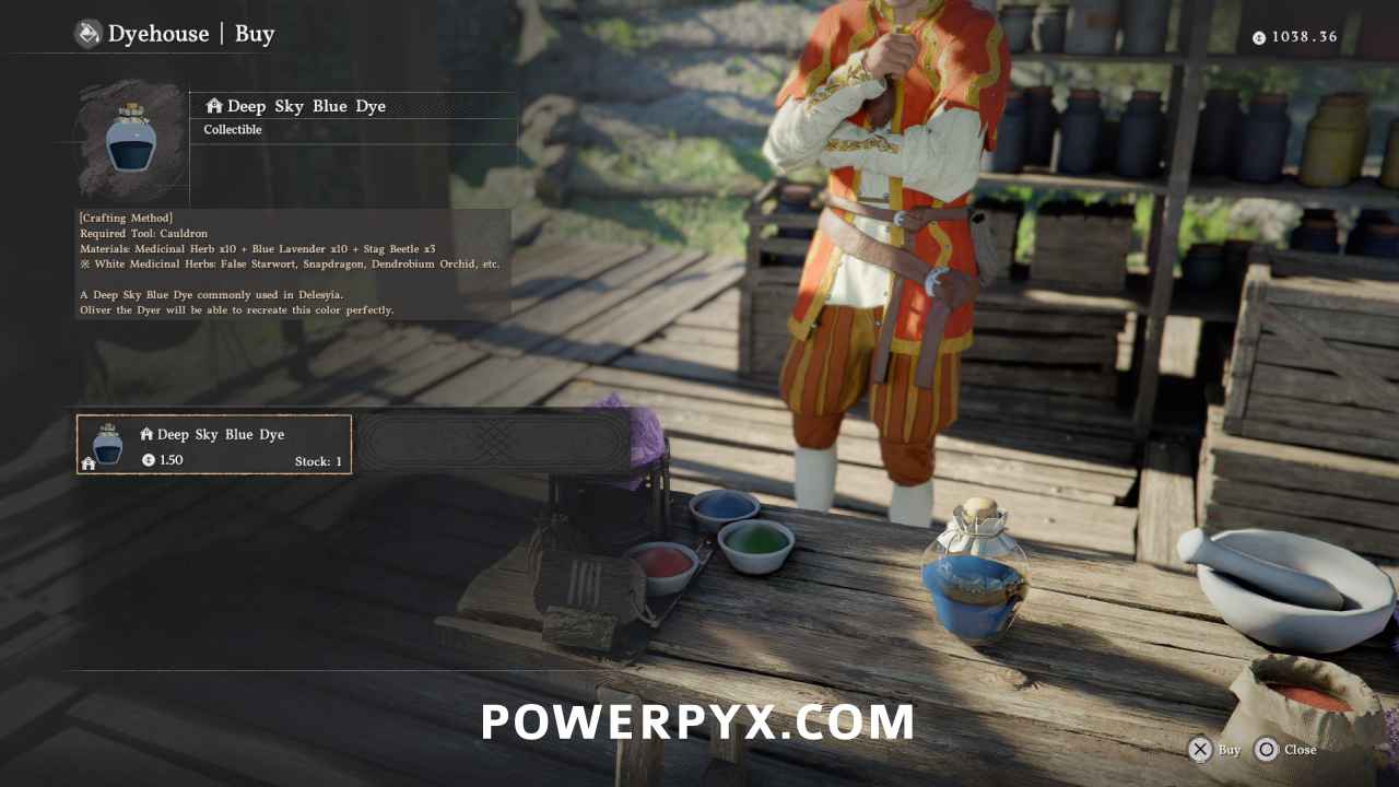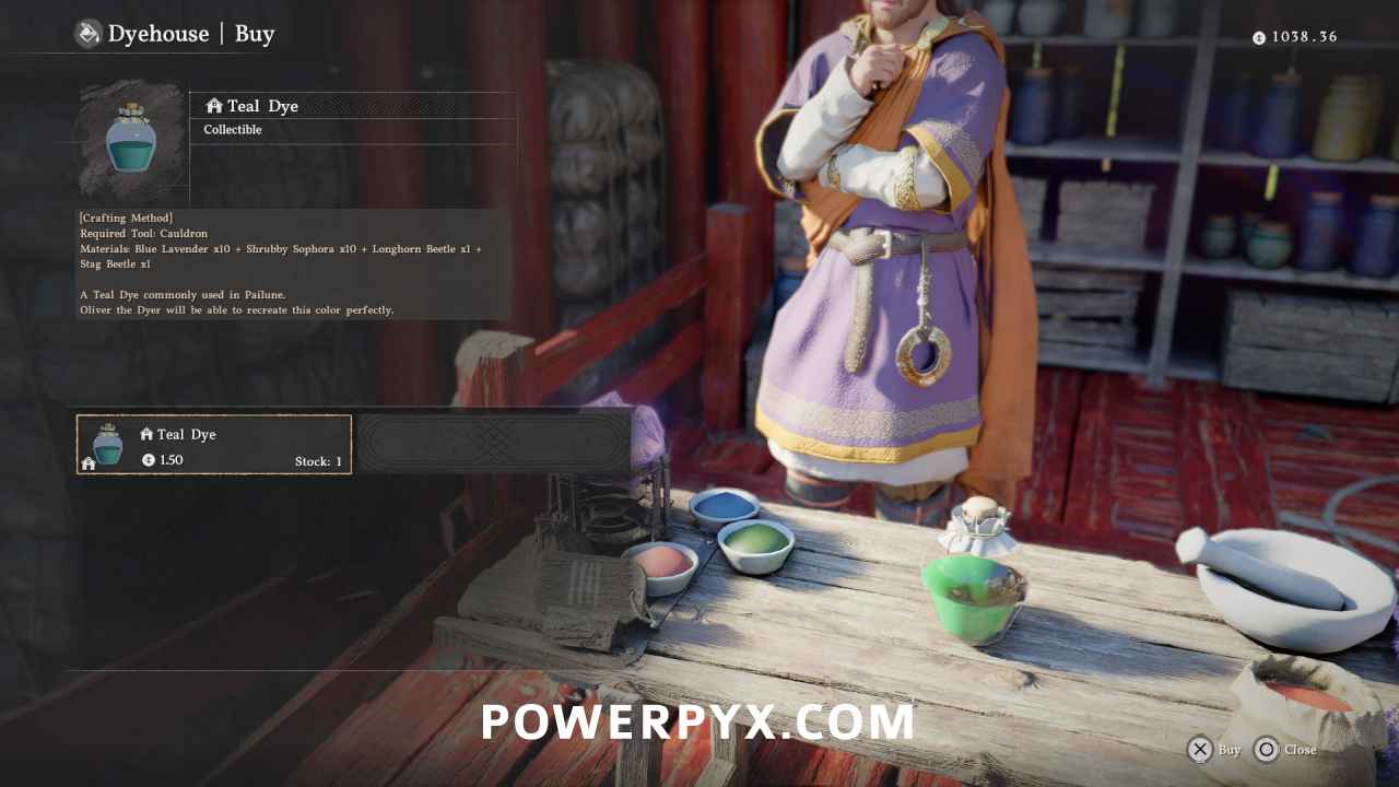Dyehouse #7: Teal Dye – in Pailune Town, only available after story chapter 7 (before this the town will be hostile)