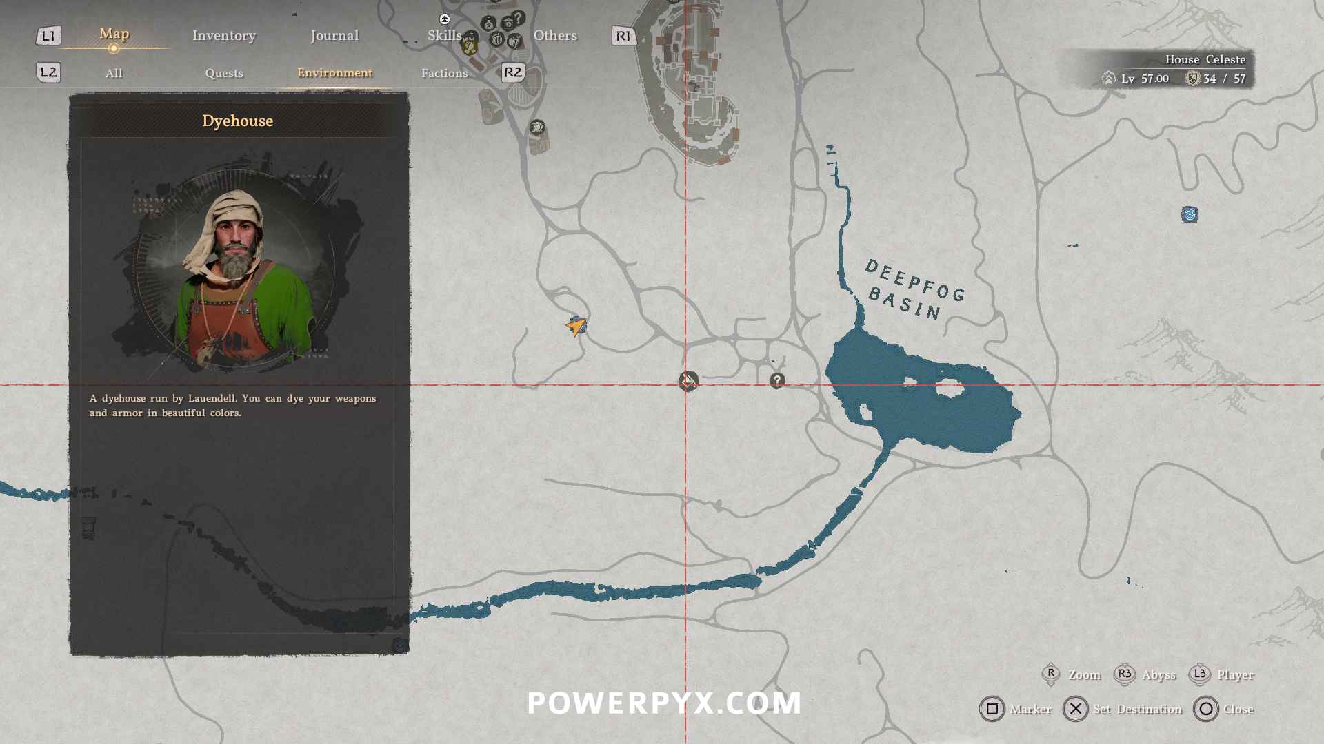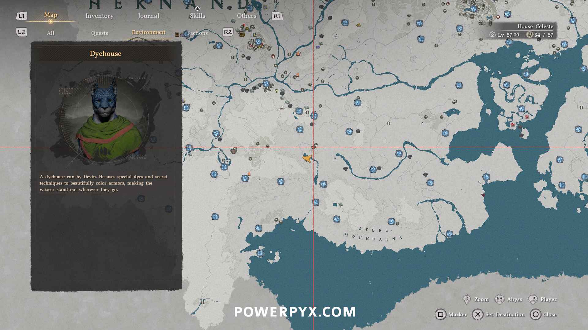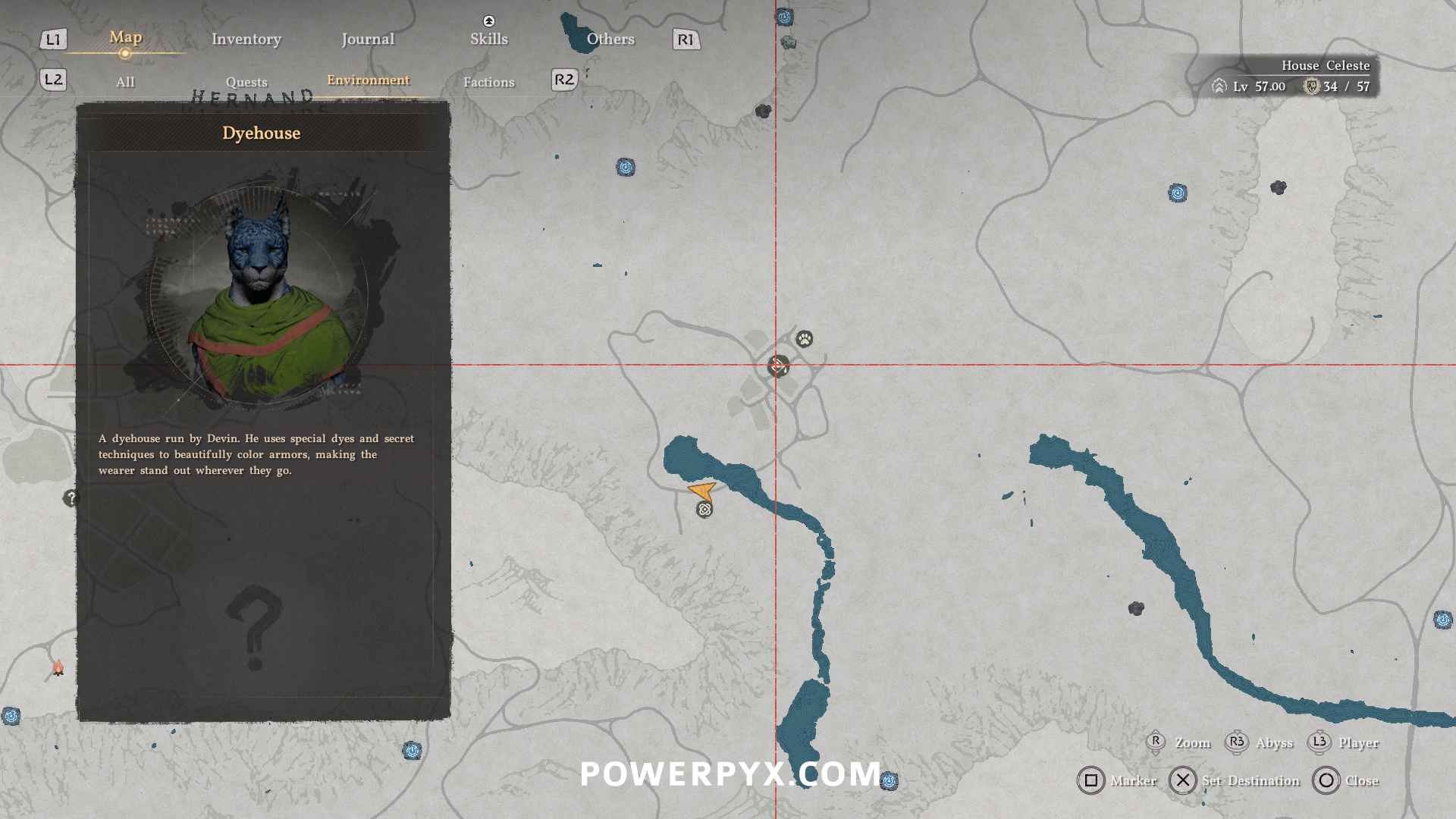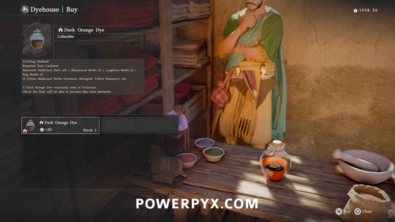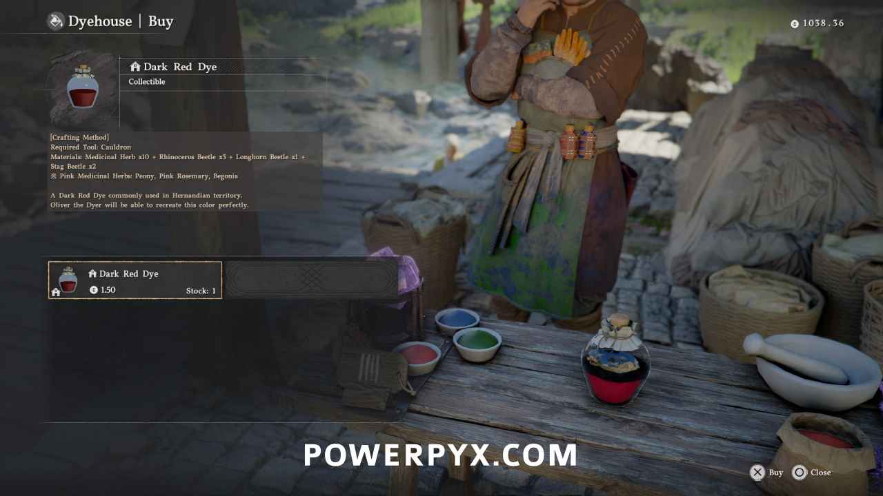 Dyehouse #7: Teal Dye – in Pailune Town, only available after story chapter 7 (before this the town will be hostile)