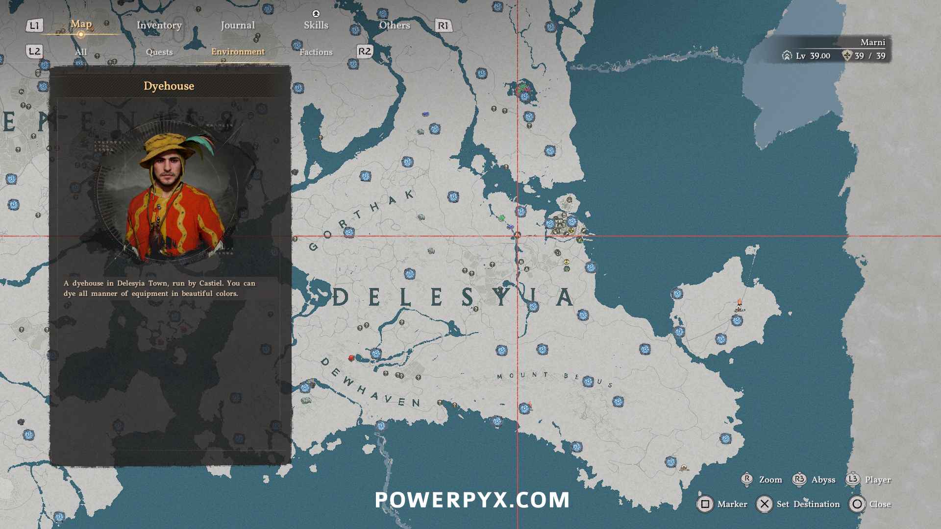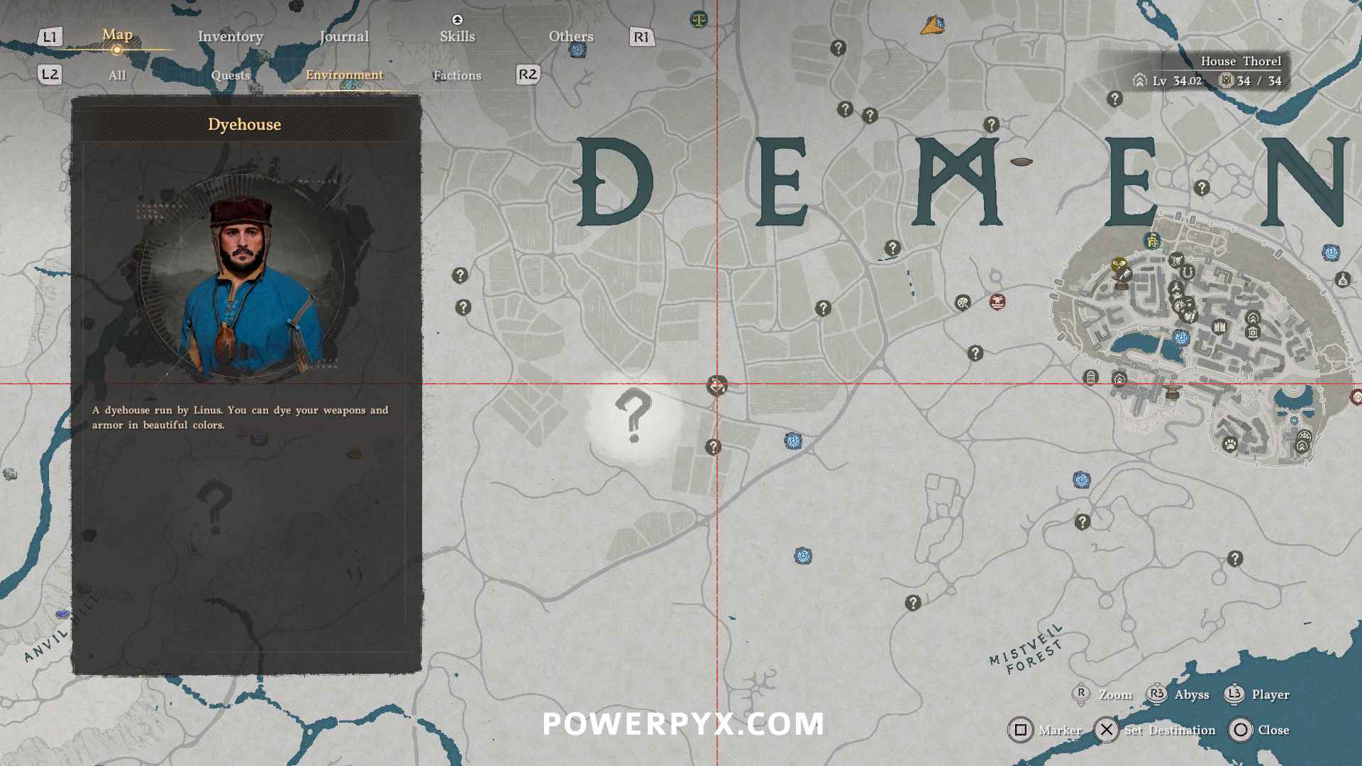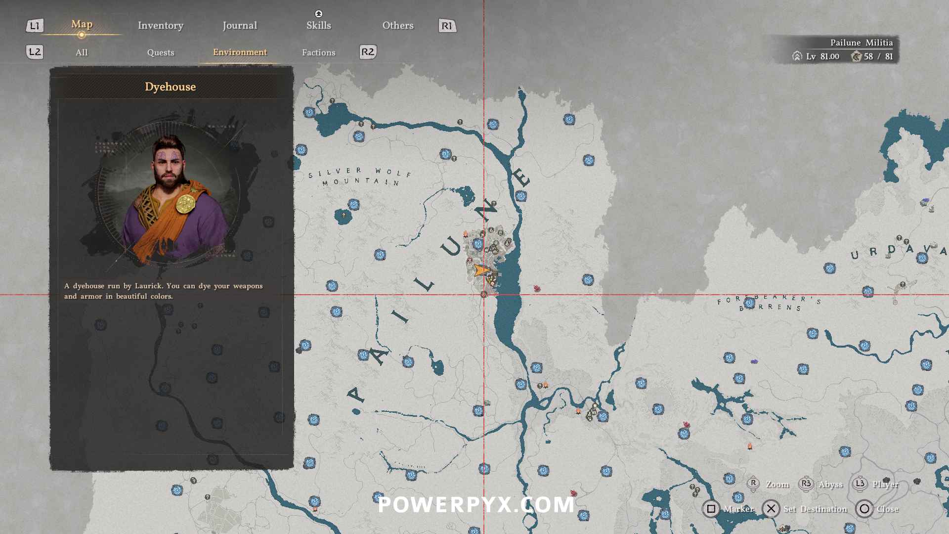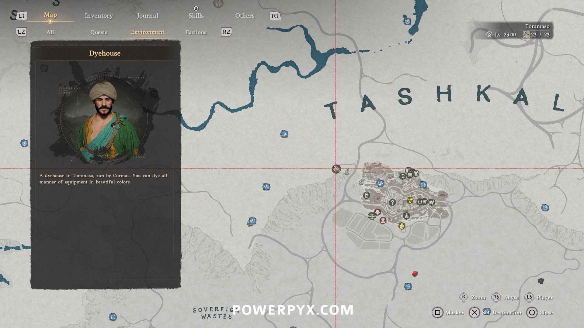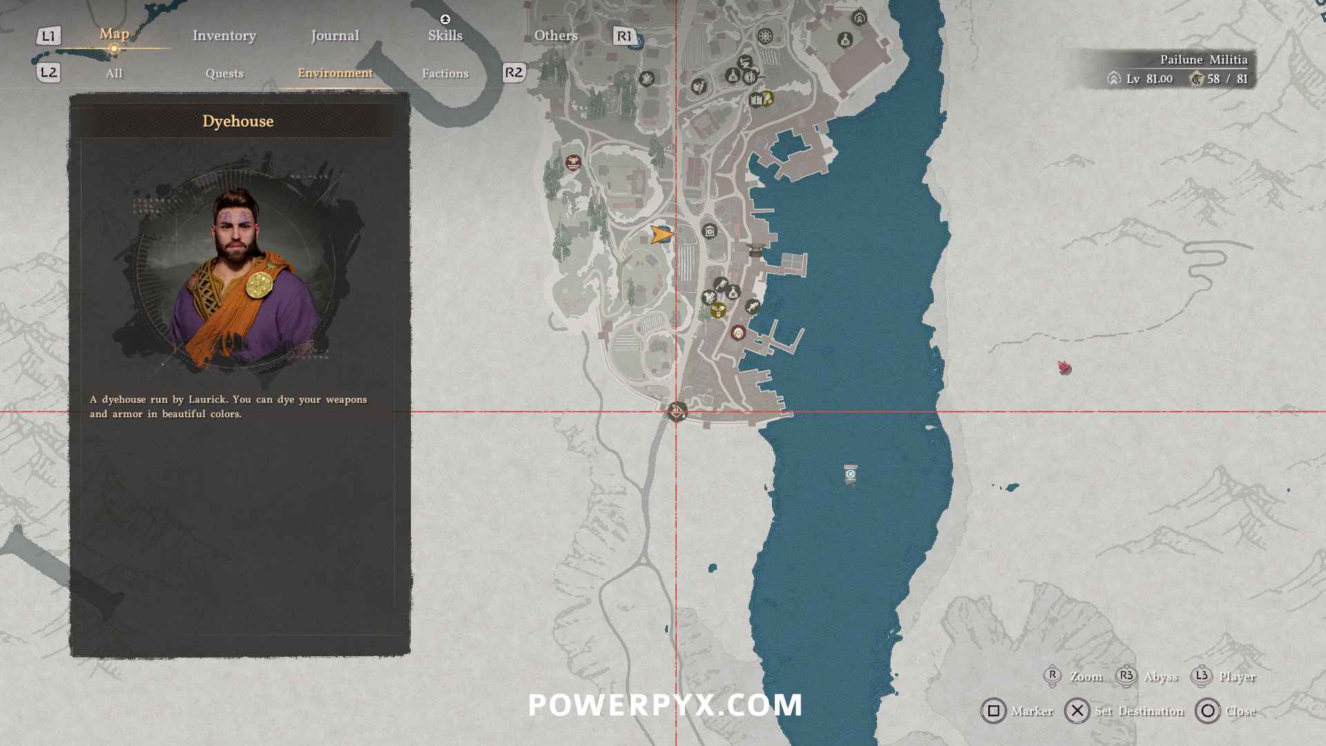 Dyehouse #7: Teal Dye – in Pailune Town, only available after story chapter 7 (before this the town will be hostile)