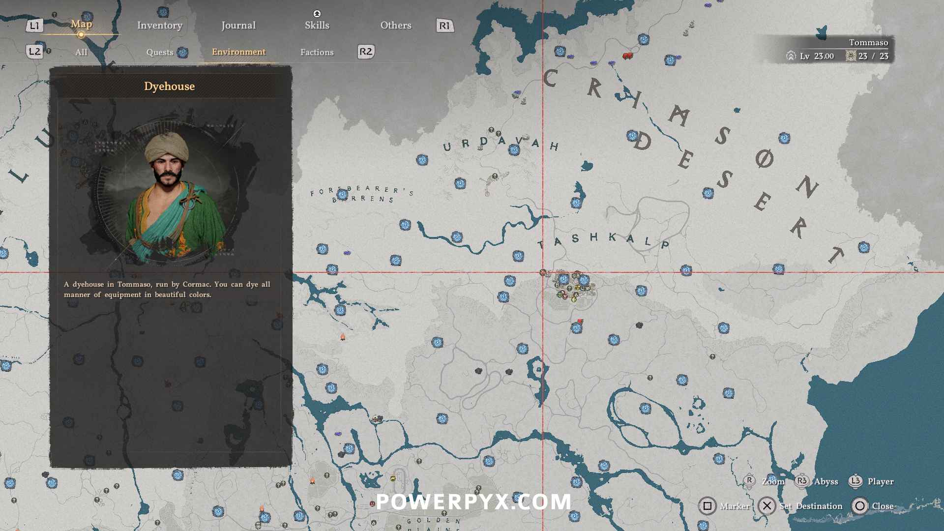 Dyehouse #9: Dark Orange Dye – just outside the town in Tashkalp in the south of Crimson Desert