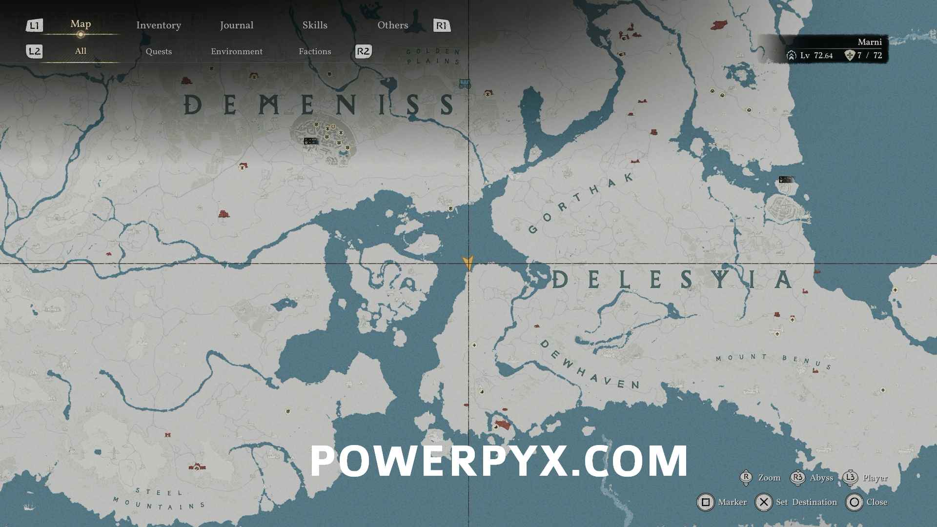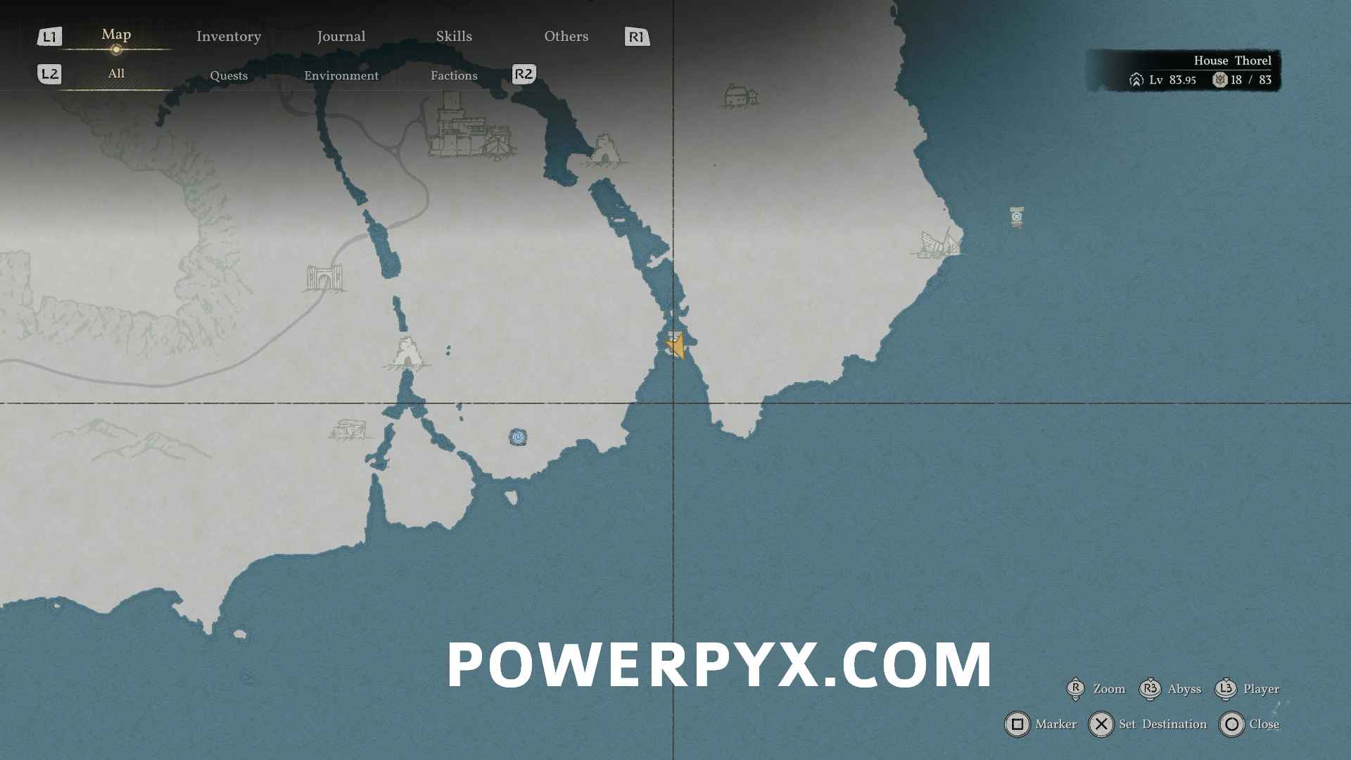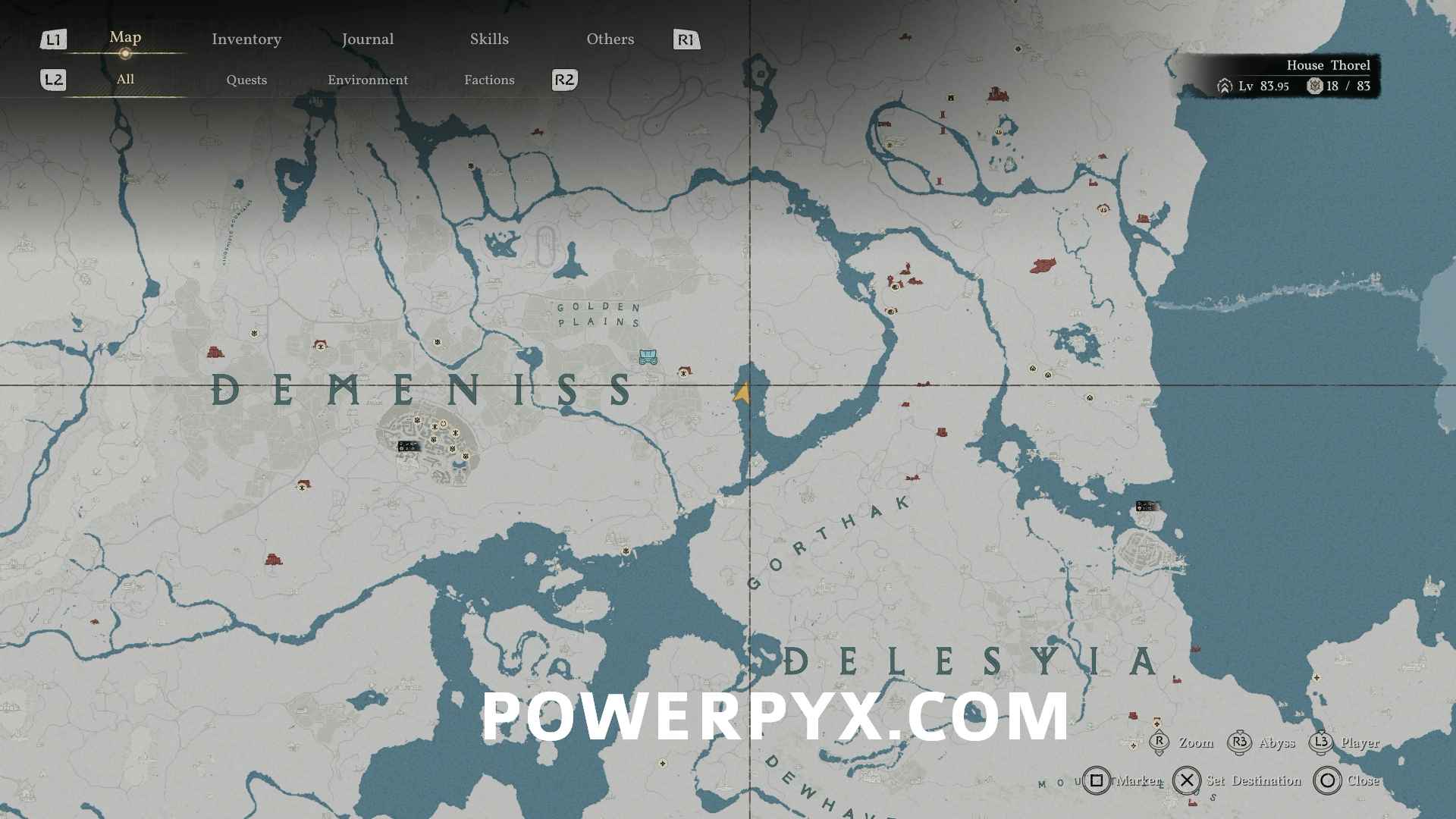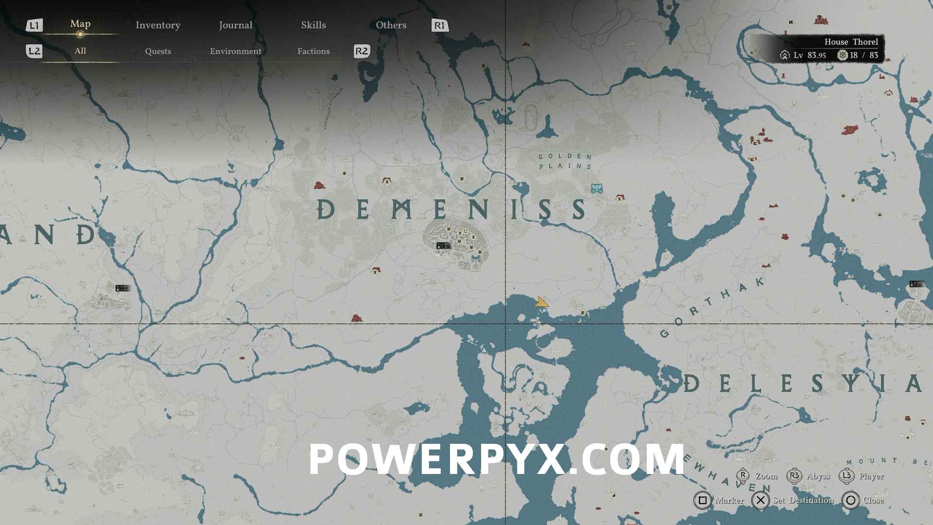 Opaleye can be found on the south coast of Demeniss, directly southeast of Thornbriar Fortress, at the bottom of the waterfall where the Abyss Cresset is located. This is also the location for the Crimson Opaleye.