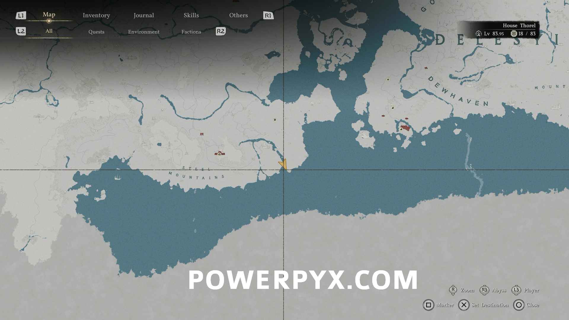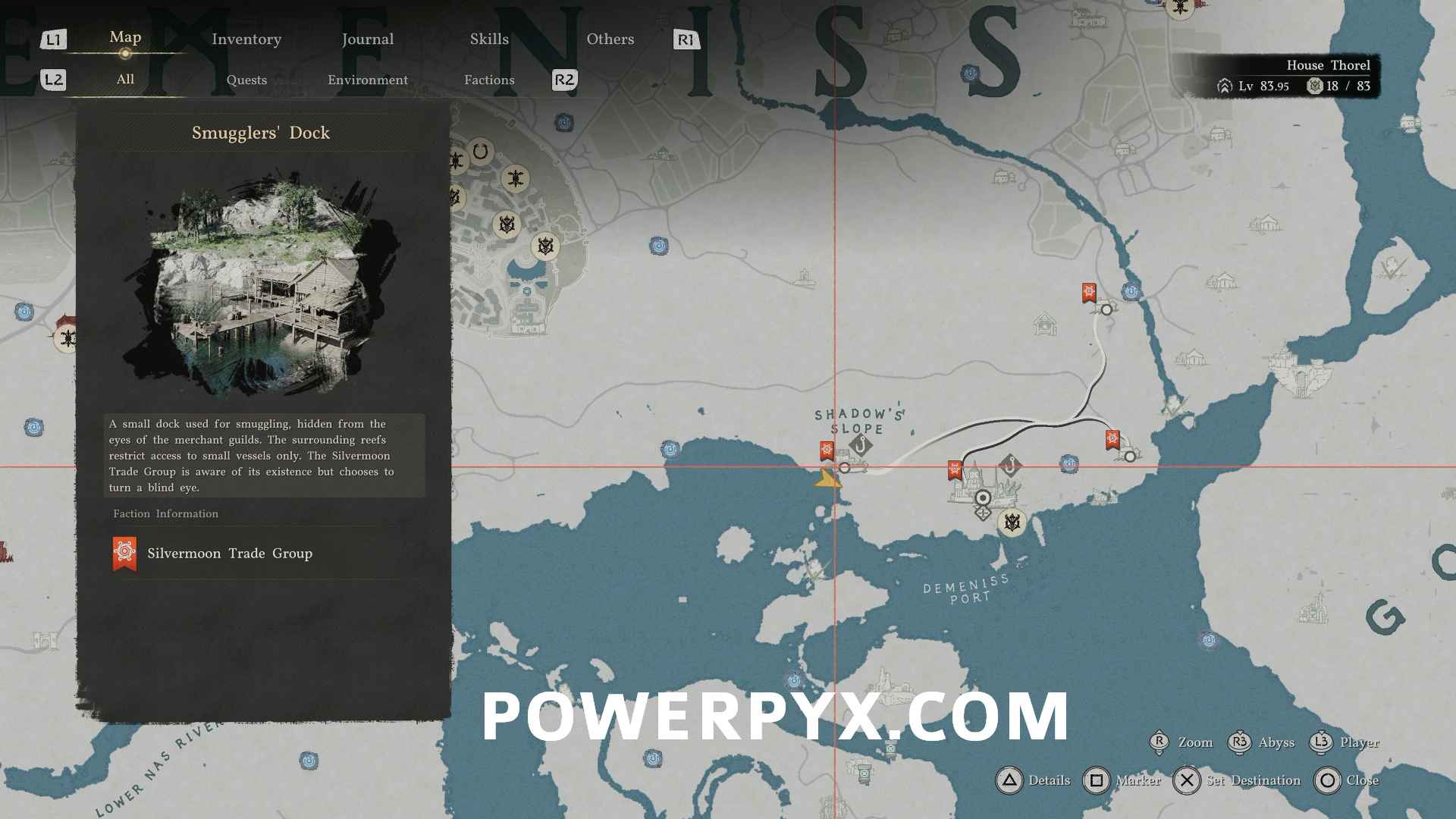 - Small Spirlin – Skoghorn Dock, southwestern Pailune / Grey Rock Dock, northwestern Demeniss