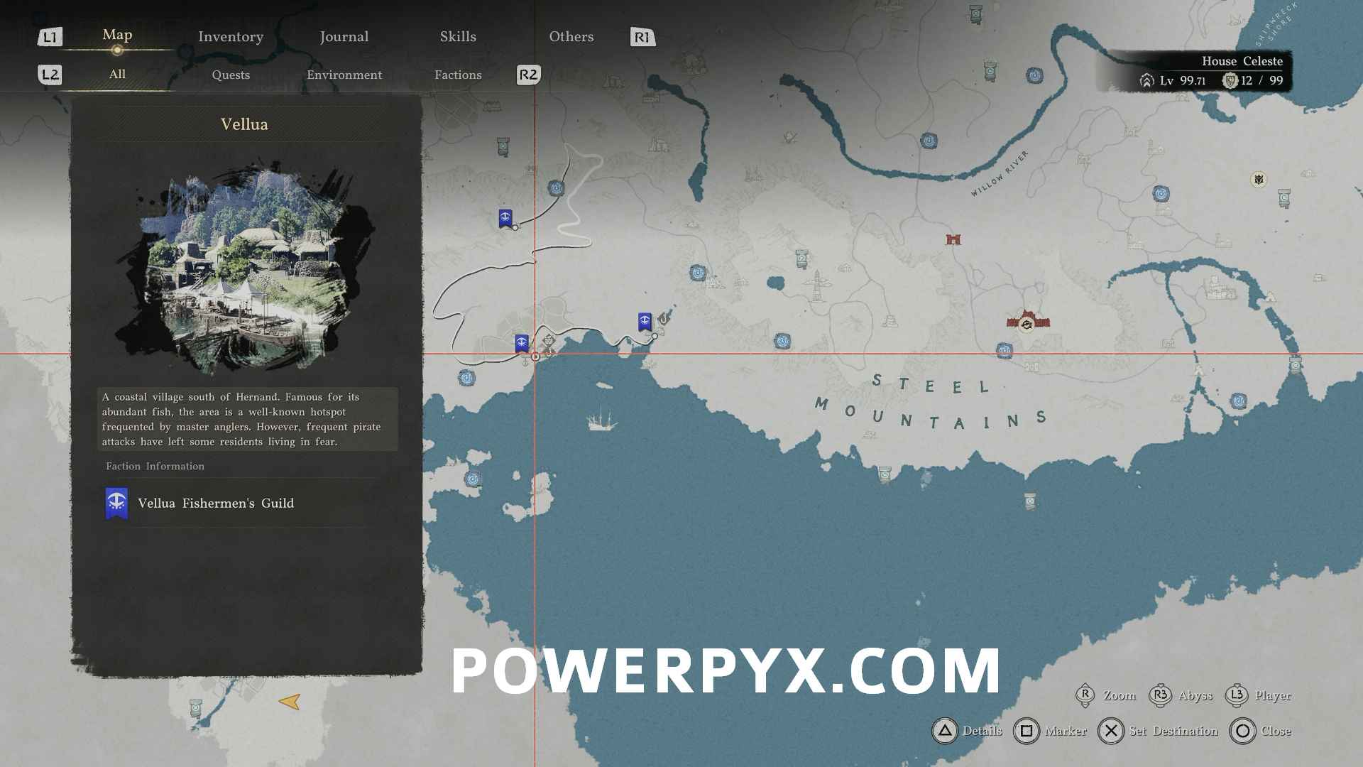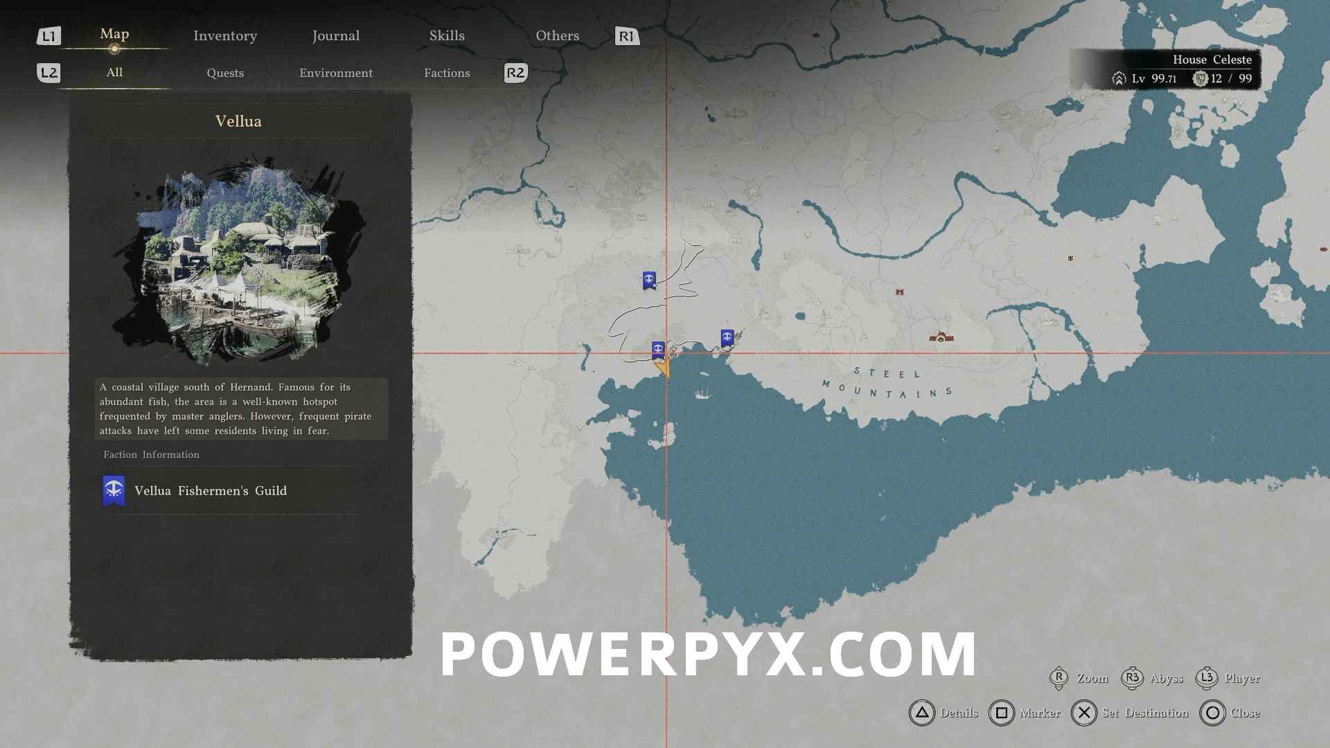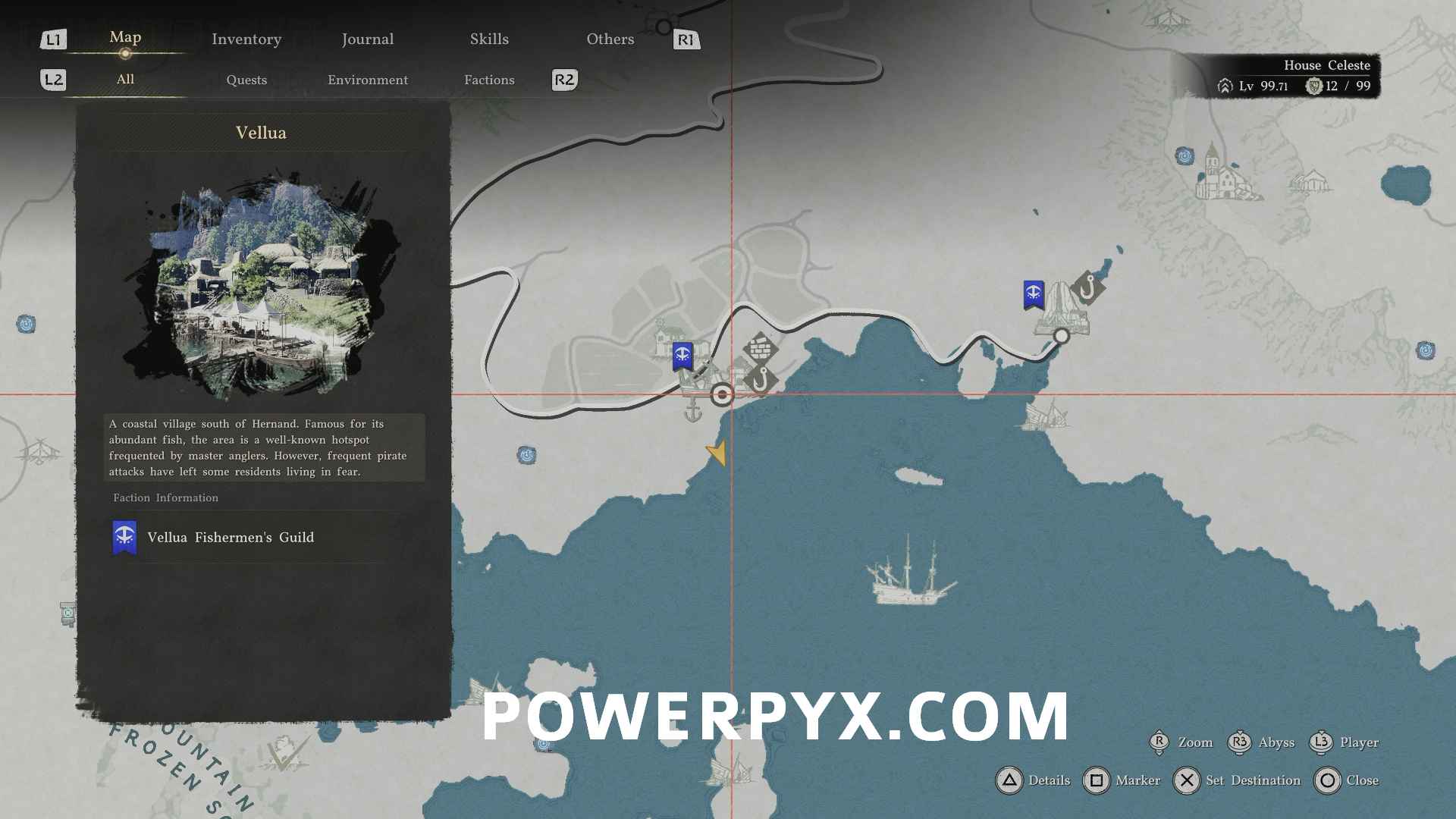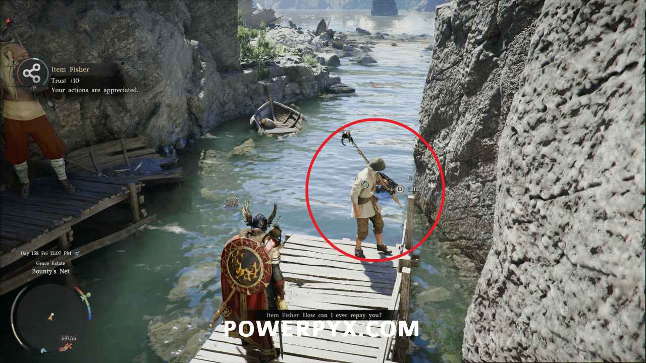 If you can’t find Patrigio or just want to steal the rod, then go to the location Bounty’s Nest located east of Vellua in southern Hernand. There is an NPC named “Item Fisher” who is using the rod. Scare him by attacking nearby or using your own fishing road which will make him drop The Claw, then you can steal it.