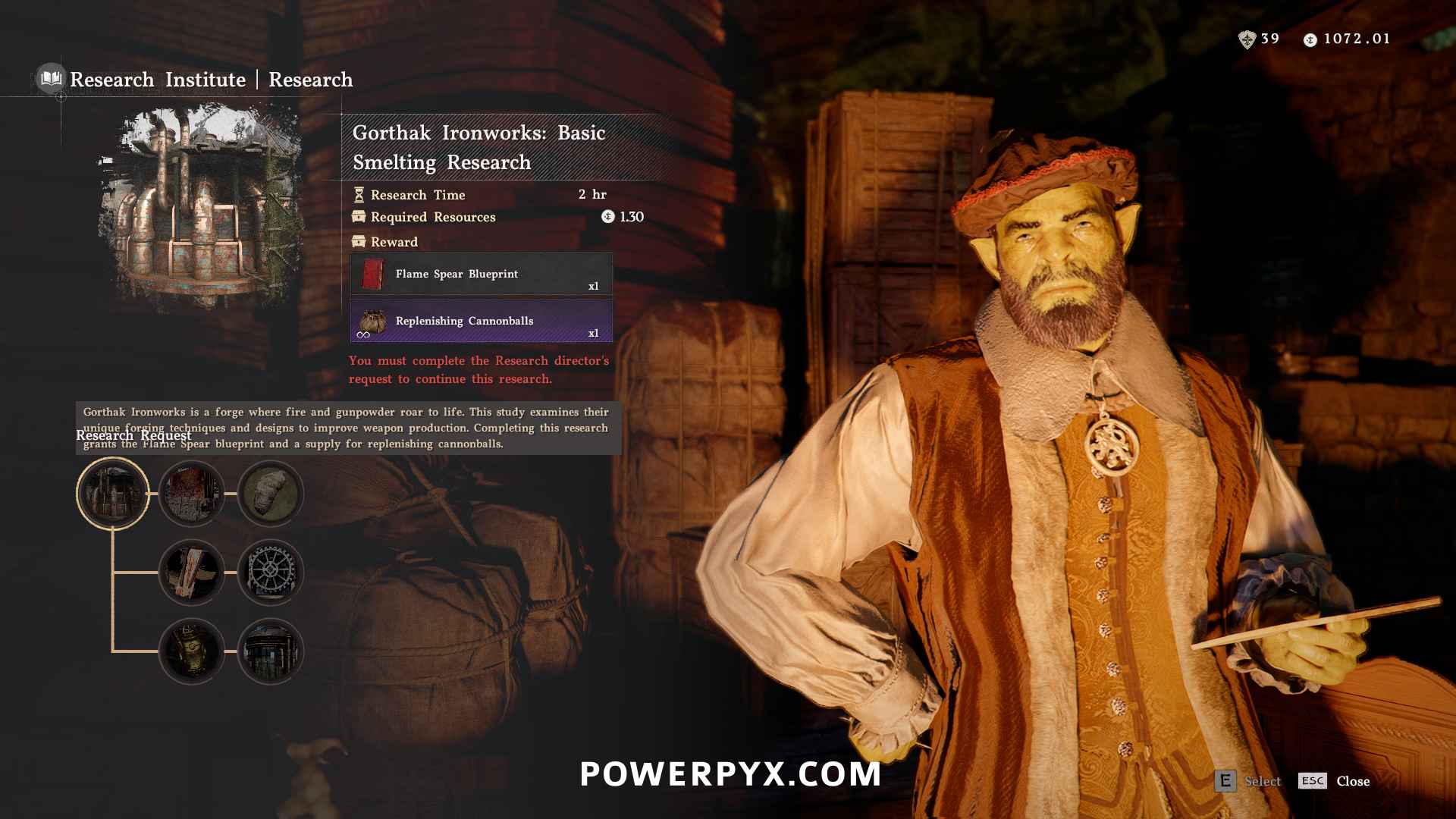 Research Institute #5: Delesyia City (Grandige) – do quest for the researcher to unlock his shop