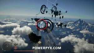 Then glide to the left where you can see the next fan, which will boost you up to the next ring. There is another fan on the left just past the closer ring which will allow you to reach the second, then glide to the far platform.