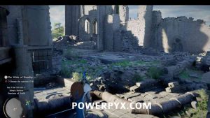 Step 5: Grab the piece and locate the broken pillar in the Northeast side. Position the pillar above the broken piece until it starts getting surrounded by leaves: