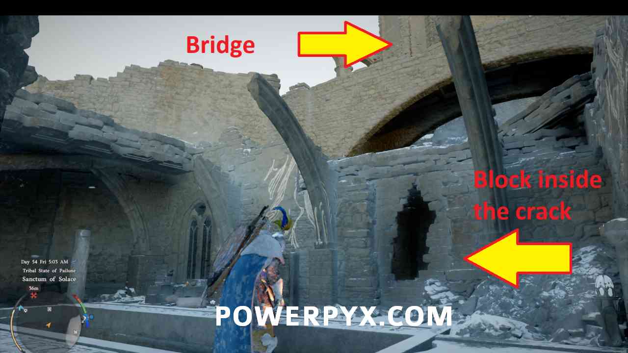Step 3: Head back out of the crack in the wall and look to the right where you will see the piece of pillar floating in an alcove: