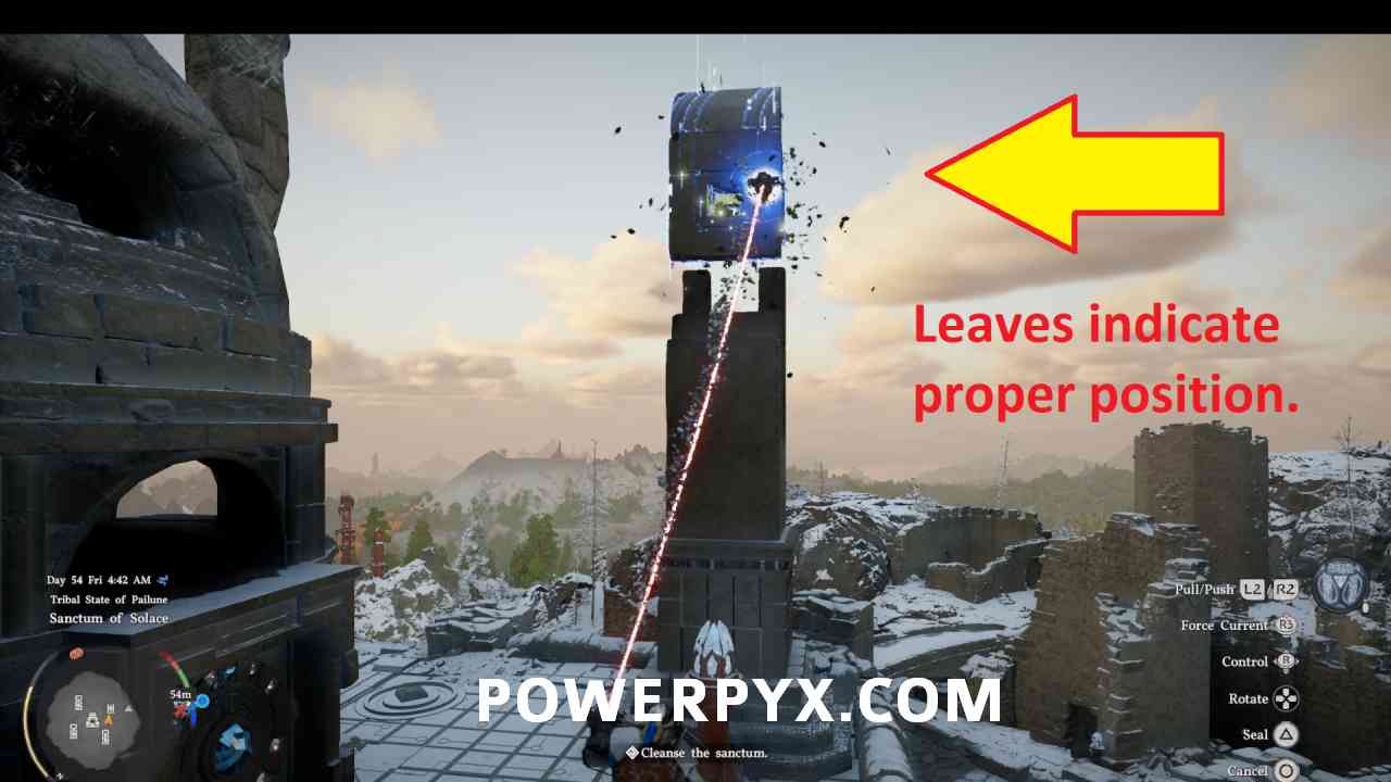 / TAB key), bring it to the device and locate the broken pillar in the South corner. Position the piece above the broken pillar so that the leaves are surrounding the piece.