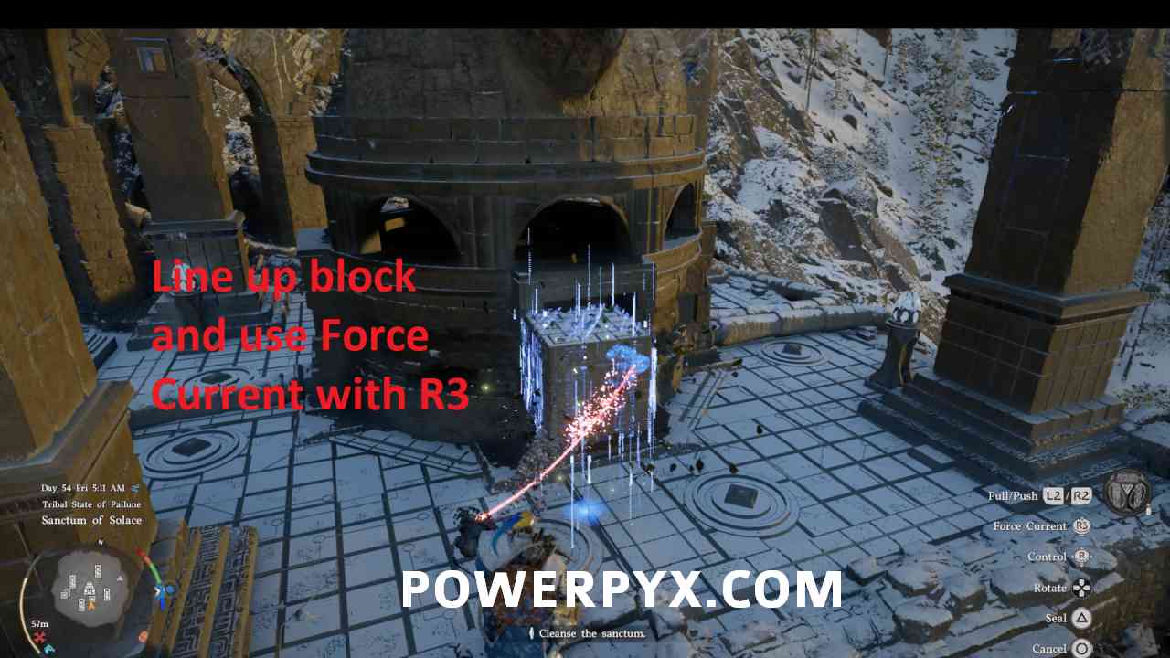 Once in the correct position climb on top of it and do a jumping Force Palm to slot it in (jump and