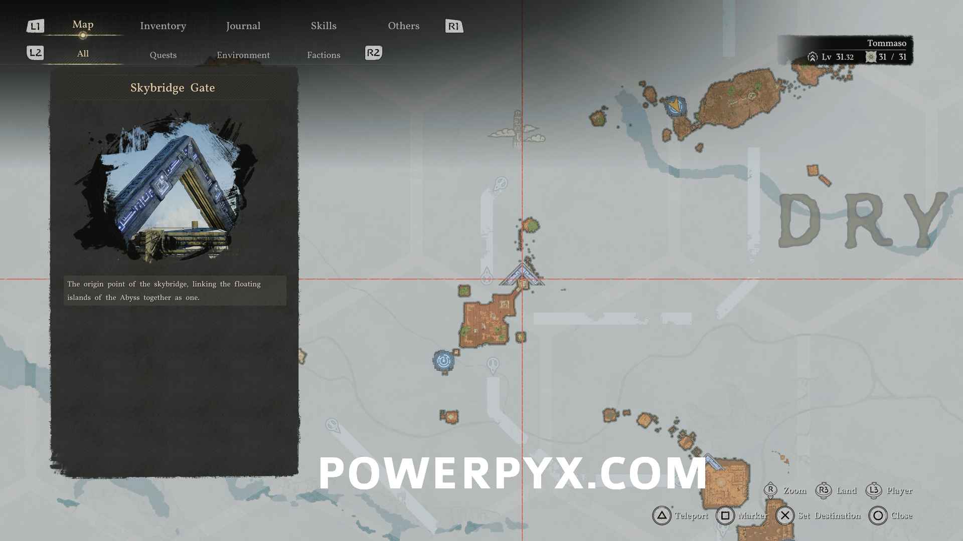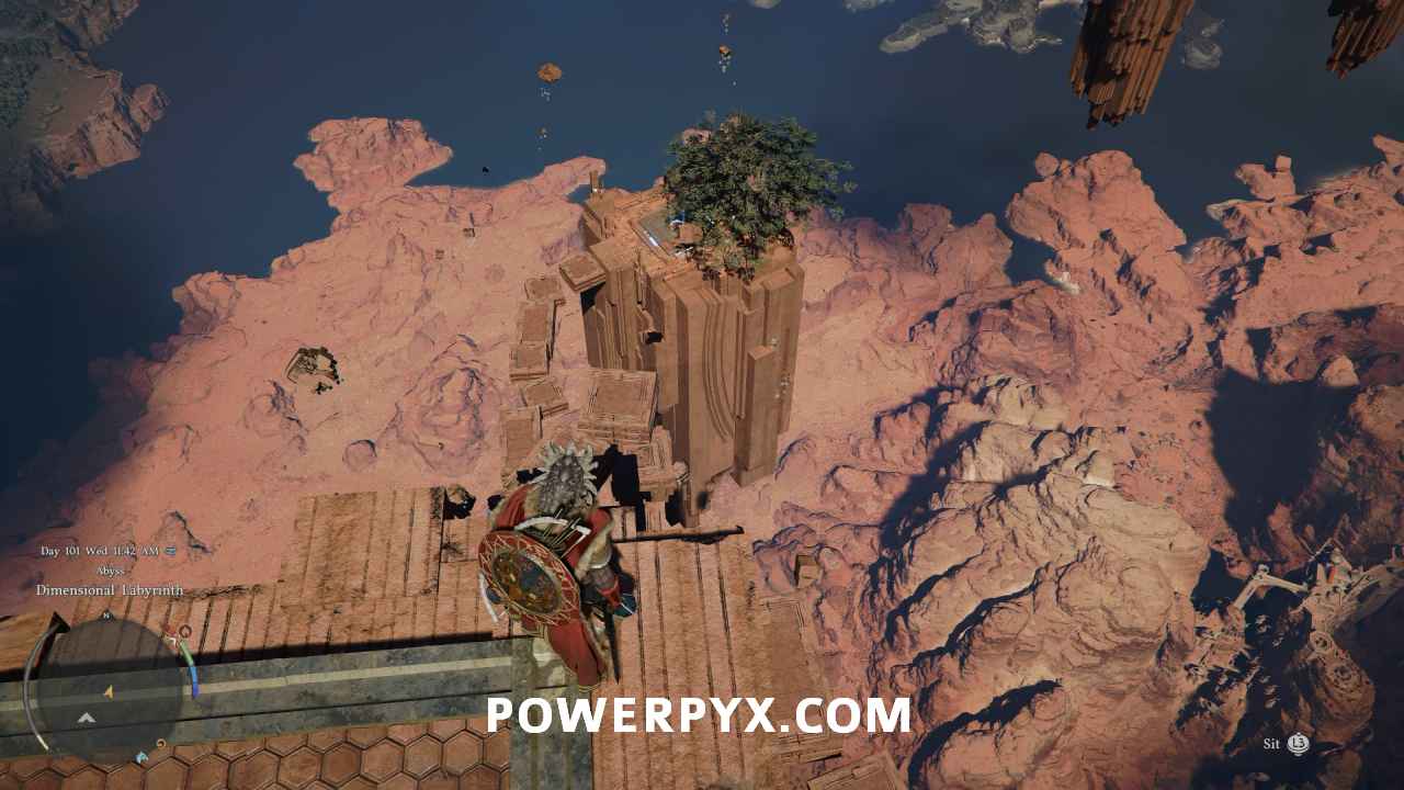 After the teleporter you can walk along the path that unfolds in front of you, or just glide to the far side. You can find the Abyss Nexus on the rocky platform.