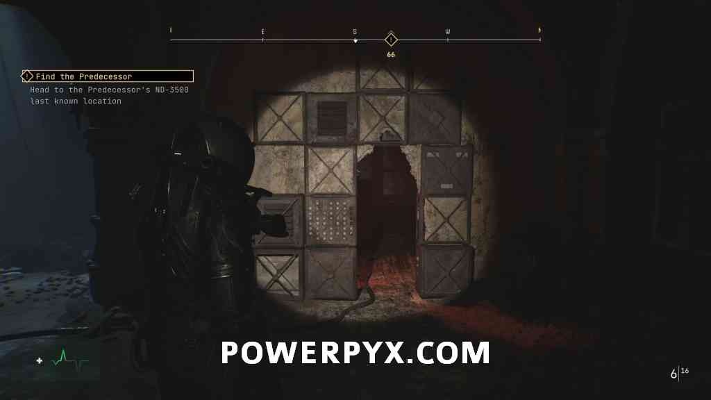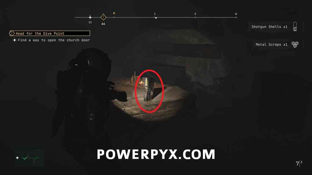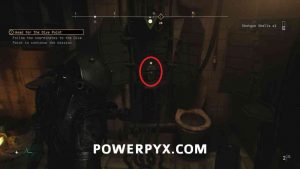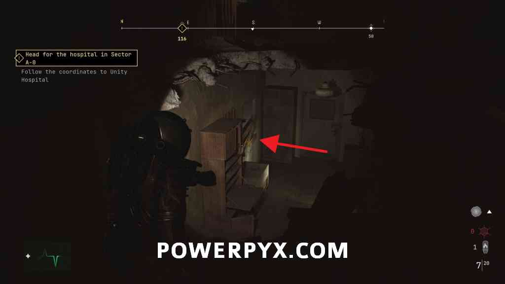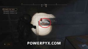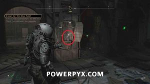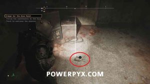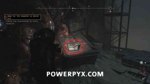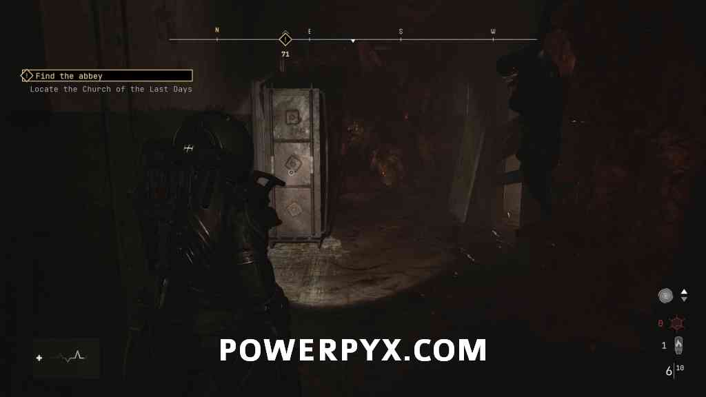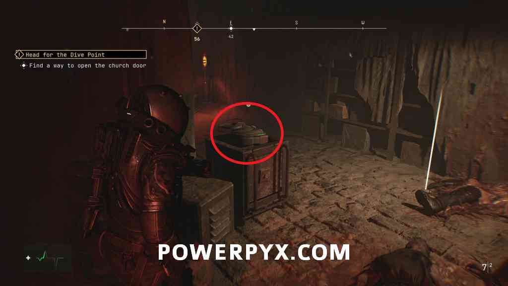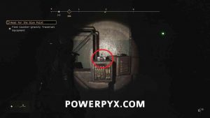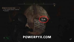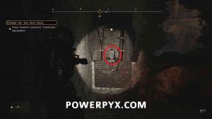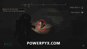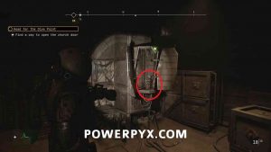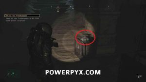 Further in the catacombs you will connect power to a door and then have to survive an ambush. Once done, go through the door you opened to find a utility room. This will be in a dispenser next to the storage box.