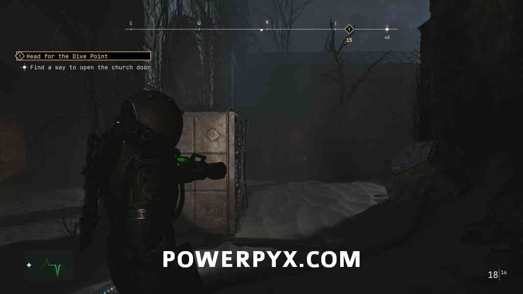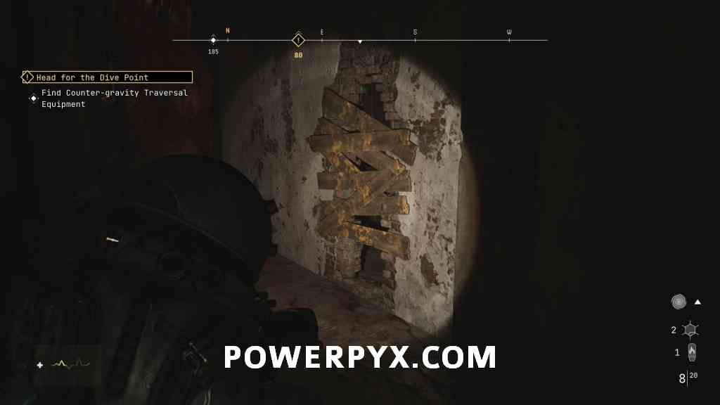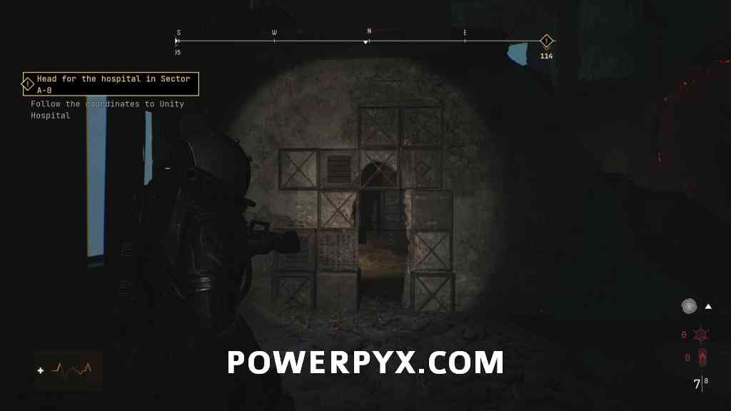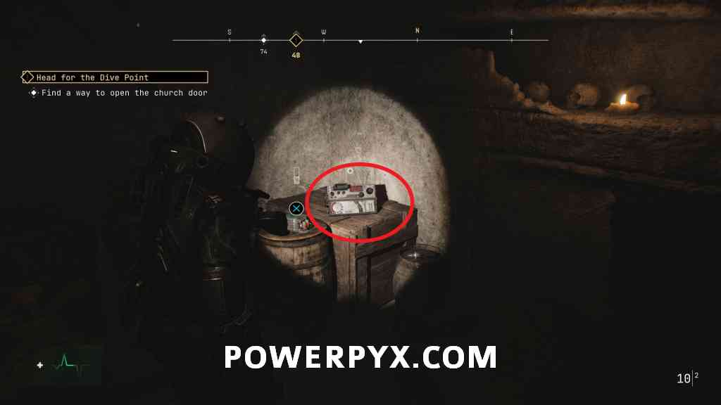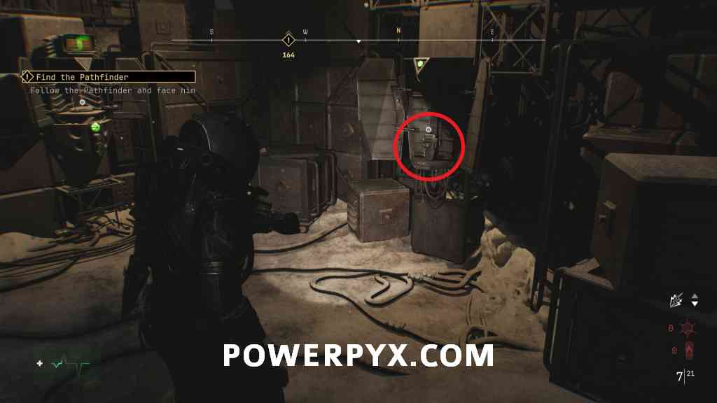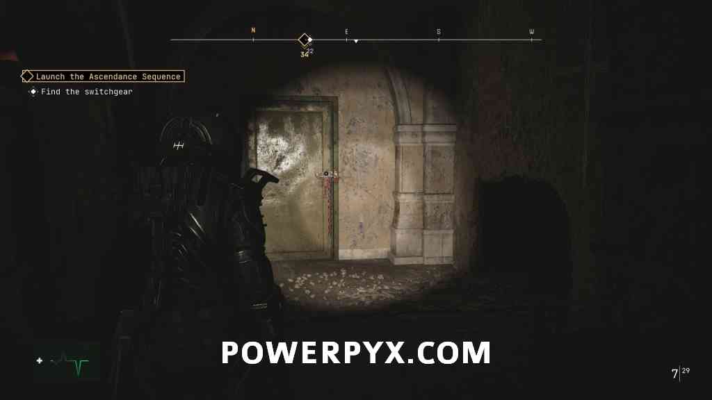 Further in the catacombs you will connect power to a door and then have to survive an ambush. Once done, go through the door you opened to find a utility room. This will be in a dispenser next to the storage box.