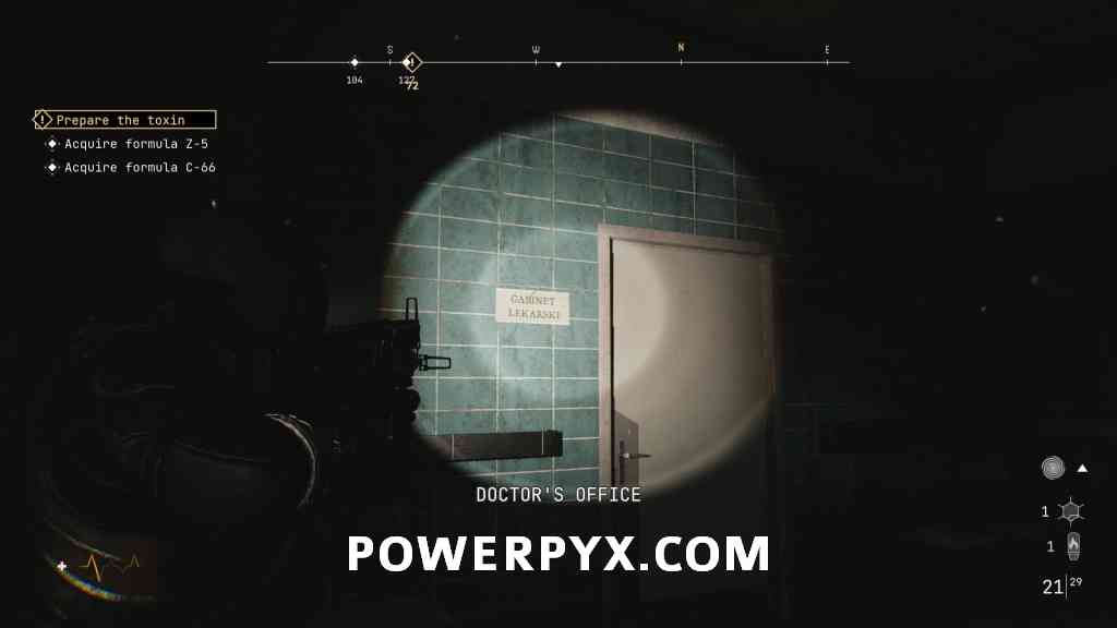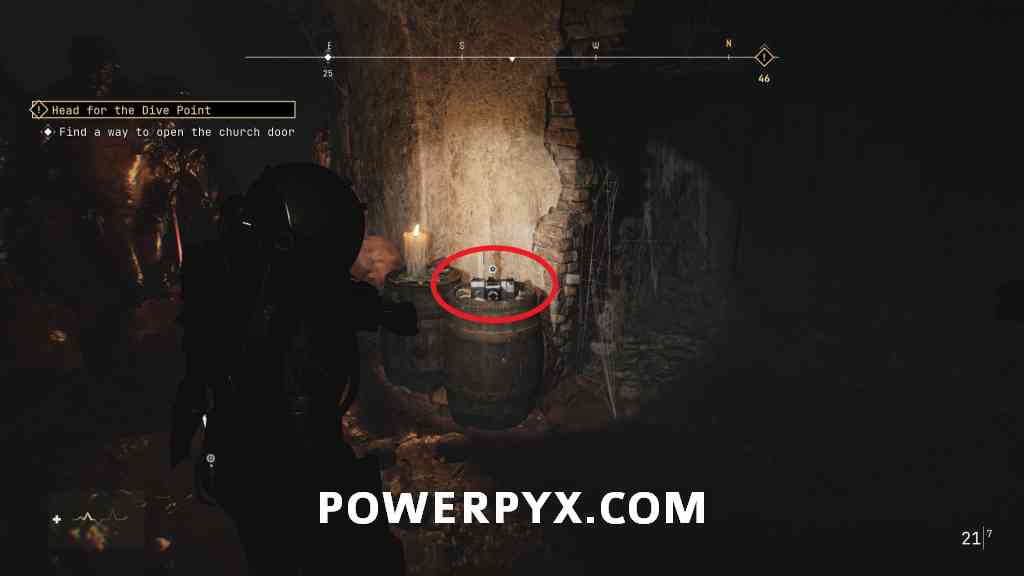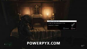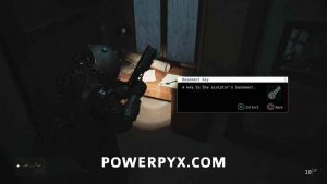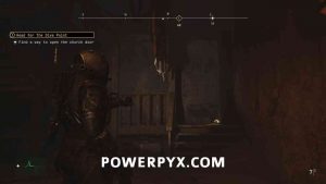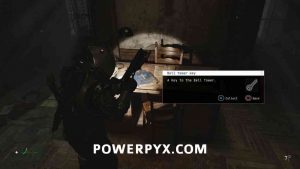 Before heading deeper into the cemetery, return back to the courtyard and use the key you just got to open Father Wojciech’s Office, which is next to the Religious Goods store. Inside will be a key to the Belltower. Head up the Belltower (next to the utility room), and you will find this weapon.