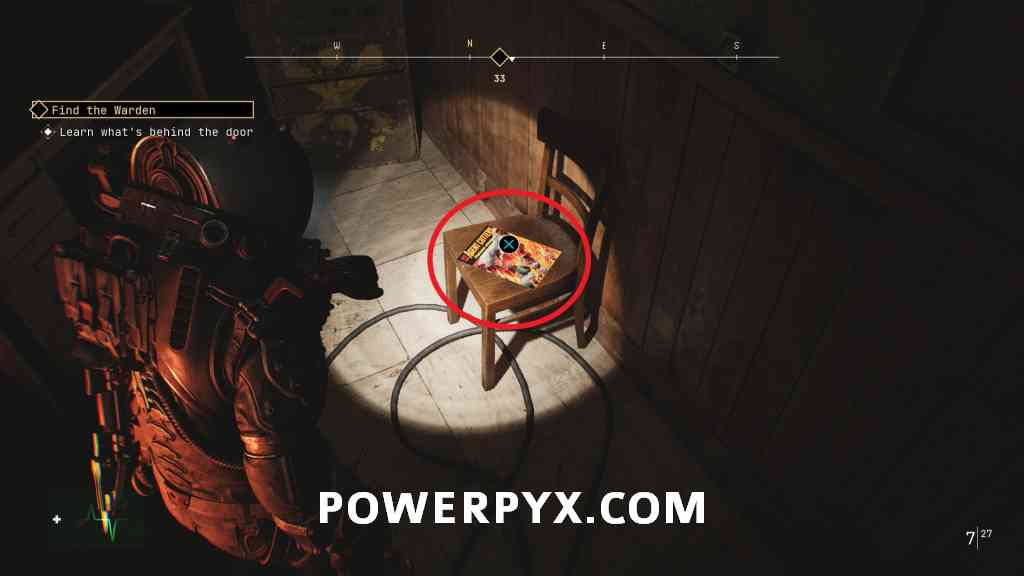 Once you are back at the Terminal, head towards the Warden’s room behind the Terminal. Ignore the door that opens when you approach it and go left. This will be on a table.