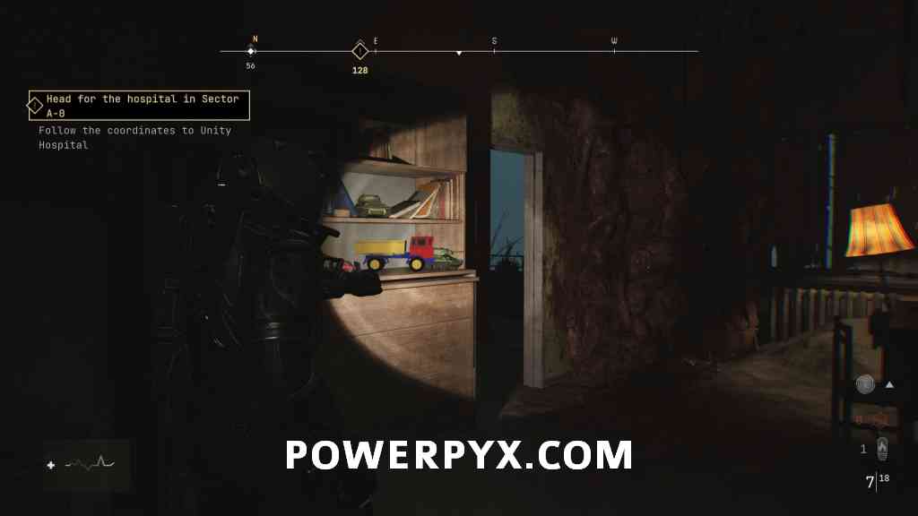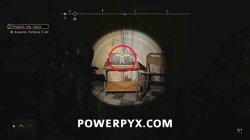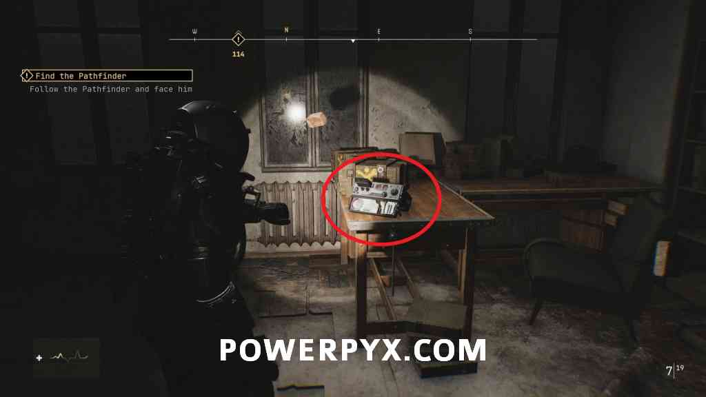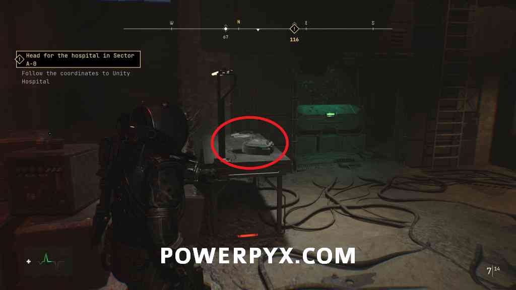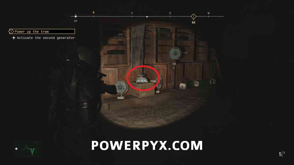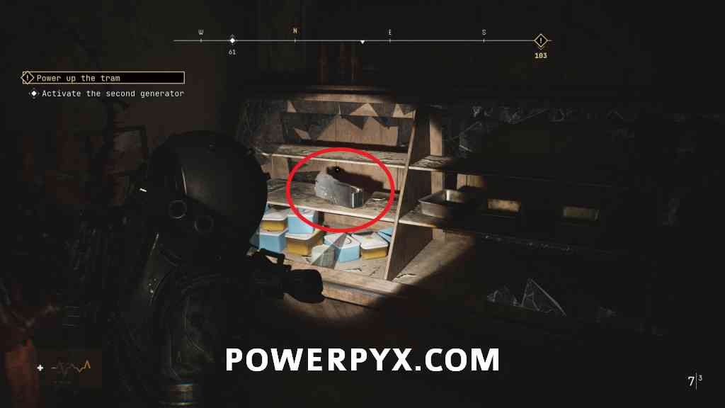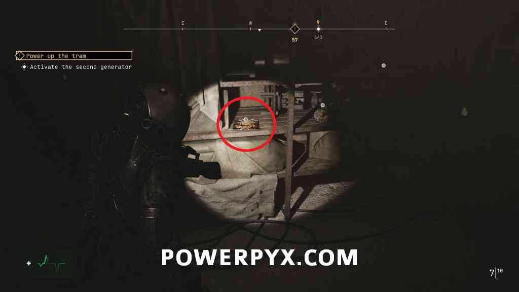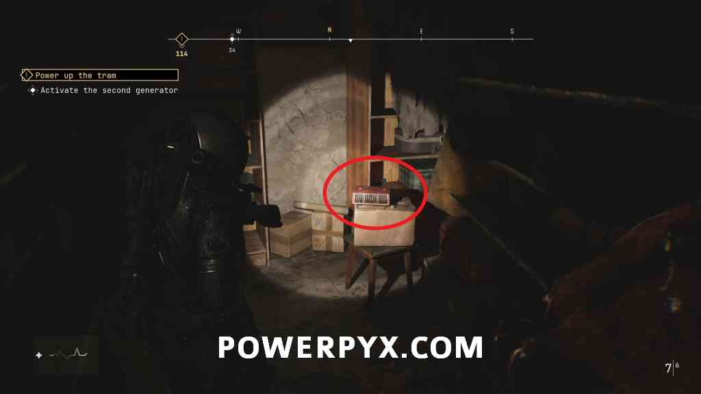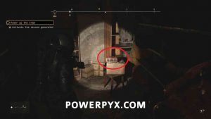 After activating the first generator, head downstairs and this will be on a bench to the right.