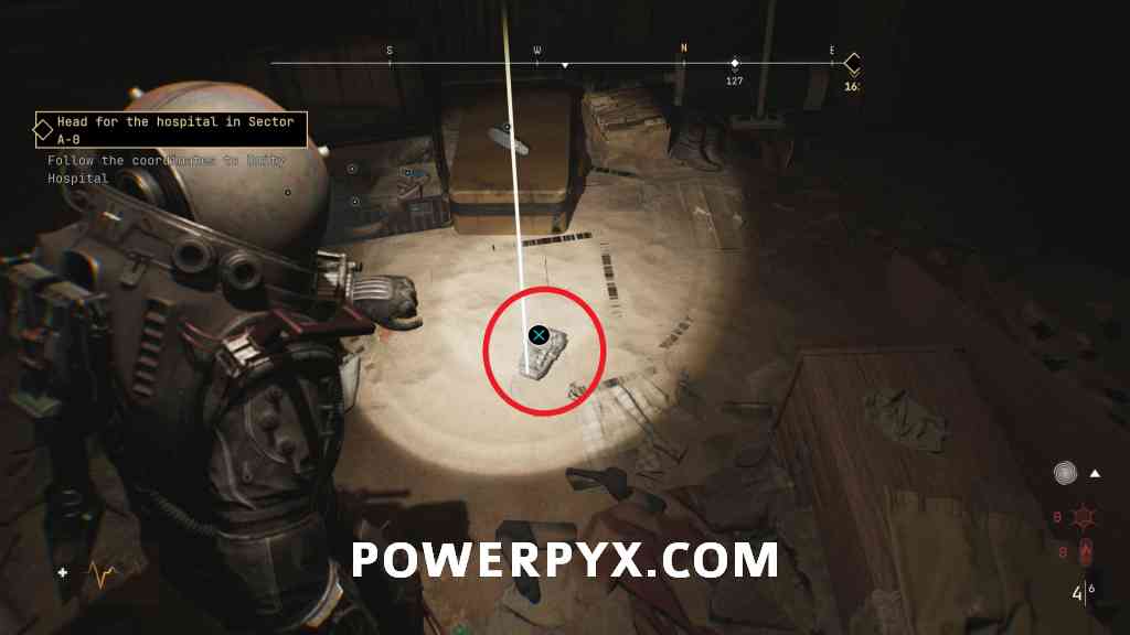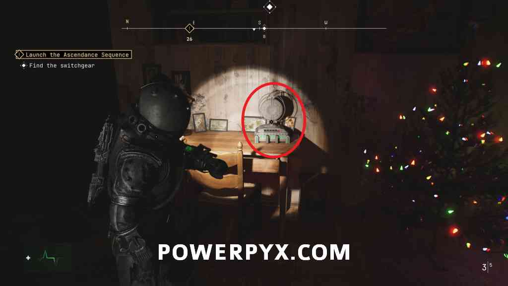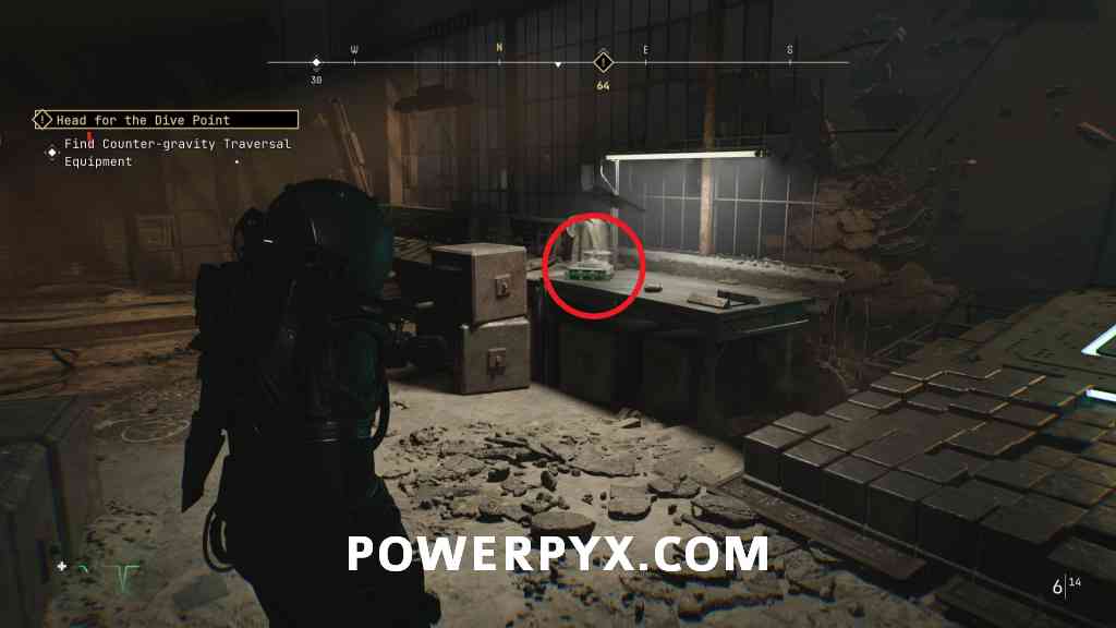 After doing some gravity jumps, you’ll land in a building with a room to the left and a corridor in front. Enter the corridor and turn right to enter a room with this on a desk.