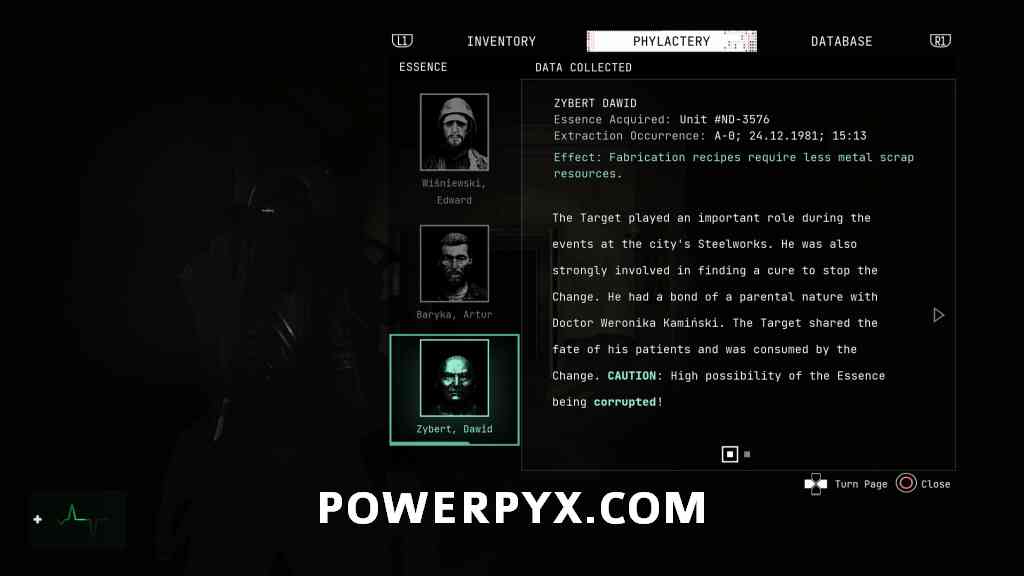 After ducking under a fallen piece of wood, enter the room on the left and this traveler will be in a pile of biomass. If you have this essence in your phylactery at the same time as both Lidia Marzec and Marcel Marzec, you will get the Togetherness trophy / achievement.