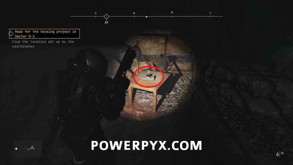 After getting back to street level and entering another building, there will be some boards you can break on the right and a metal object you can move on the left. Move the metal object and go into the back room to find this on a table.