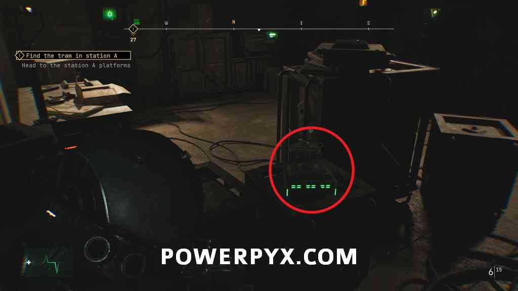 After the Ascendance Sequence, head down into Station A and there will be a utility room opposite the door leading to Platform 1. As soon as you enter the utility room, this will be on your left.
