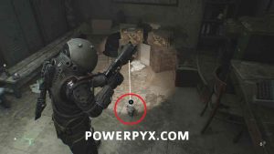 Return towards the Apartment Block and enter the open room to the left of the entrance. Use the bolt cutters on the back door and you will find a Camera inside.