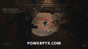 Once you enter the cemetery, you will spot a cat run into the mausoleum. Use your bolt cutters to open the gate, the crawl through the space on the right to find the cat. You will be rewarded with a key to unlock Father Wojciech’s Office.
