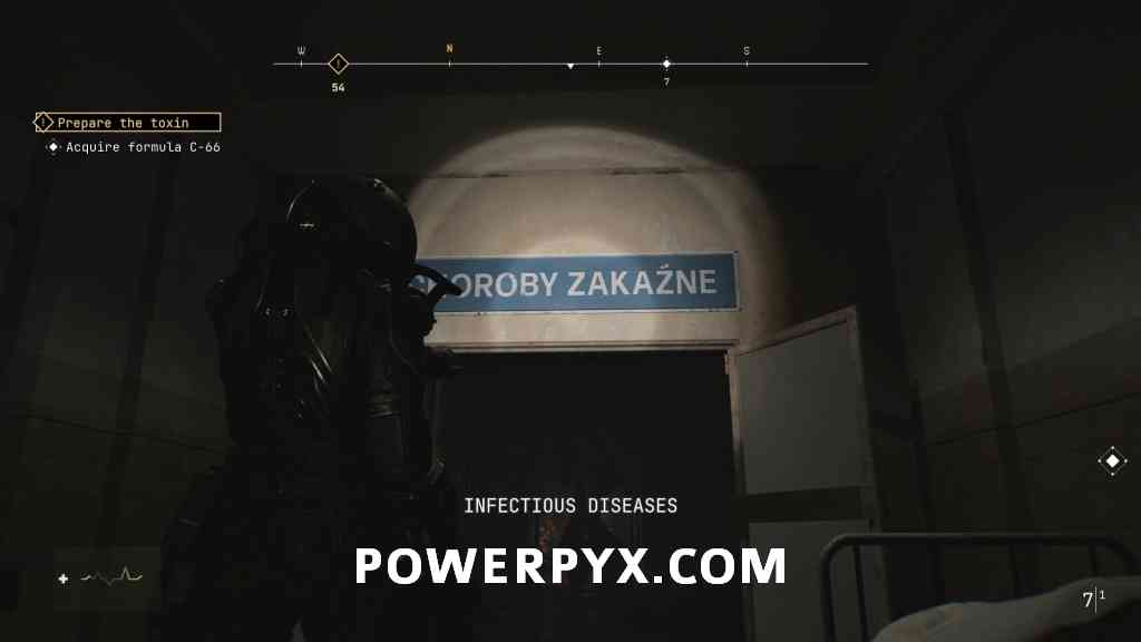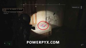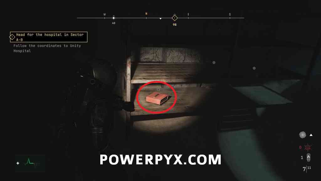 After dropping into the pharmacy, enter the utility room to find this in a dispenser next to the workstation.