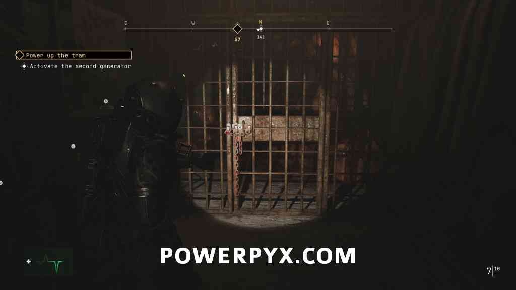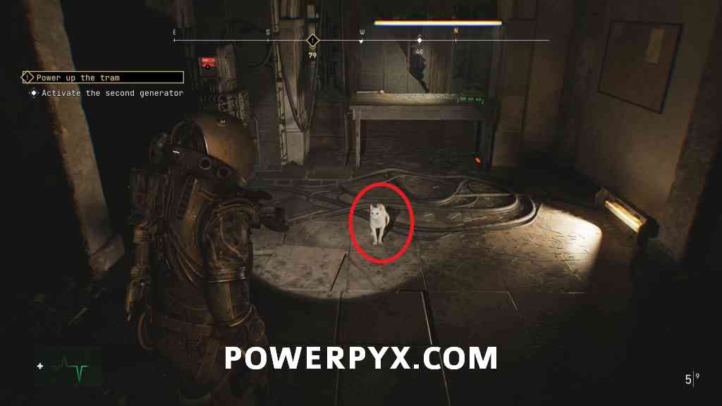 After powering up the tram, return to it and a door opposite the tram that was previously locked will now be open. Head inside to find a cat waiting for you, which will leave you a Core after petting it.