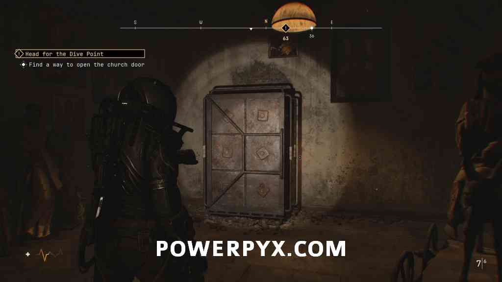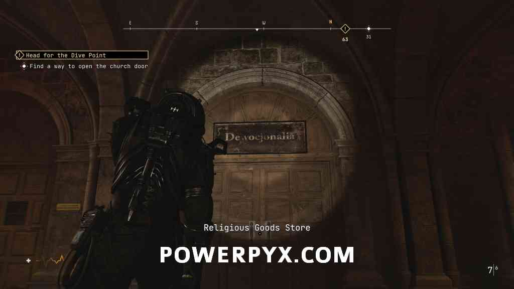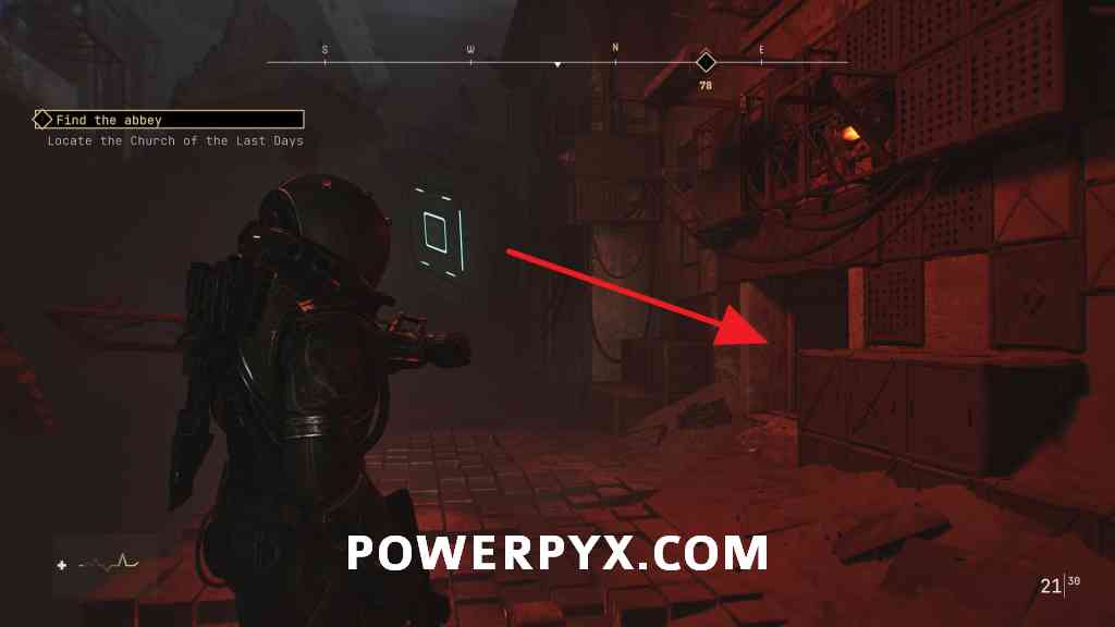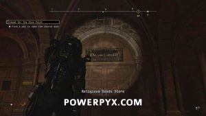 Once in the Abbey courtyard, go left and enter the Religious Goods store. Move the metal object and shimmy through the wall, then unlock the door on your right. You can now connect the power from the utility room through to this room and unlock the doors here. Once you unlock it, go inside the room to find the Core in a dispenser. You will also find the Cemetery Key here.