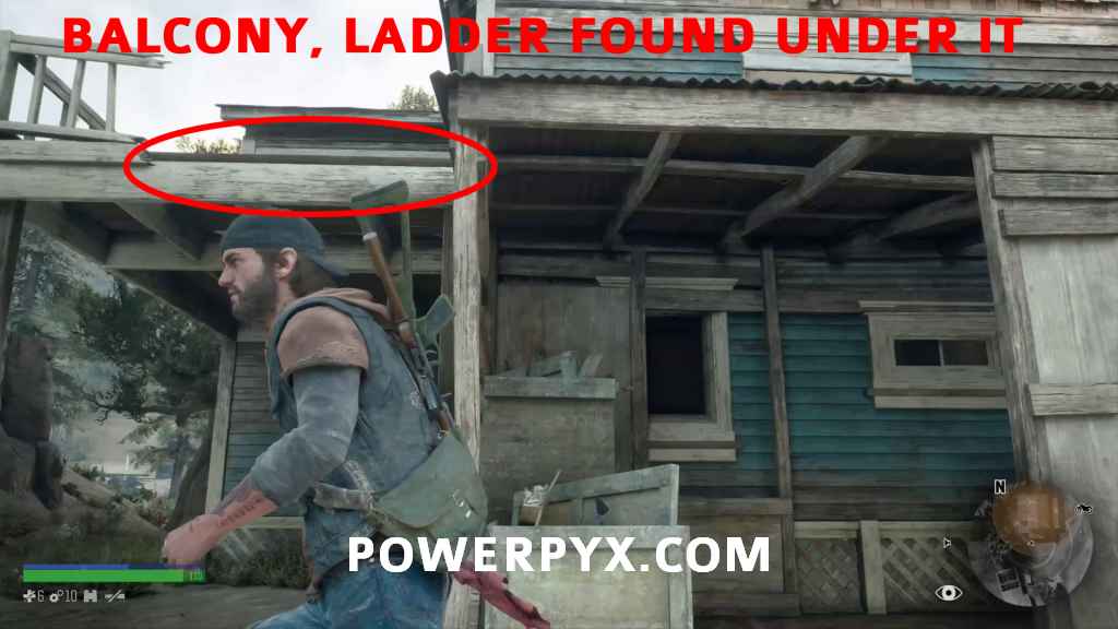 After all enemies are dead, a new yellow investigation area will appear on your mini map. There’s a blockaded house and you can’t simply enter it through a door or window. In order to get into the house you must find a ladder behind it and put it under the balcony, then climb up.