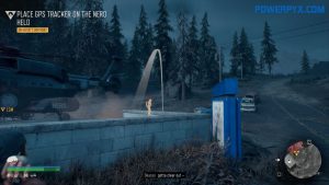 You know the drill – observe and tag the enemies from afar and use rocks to lure them away. Getting the enemy on the right side of the helicopter away should be enough to place the tracking device on it.