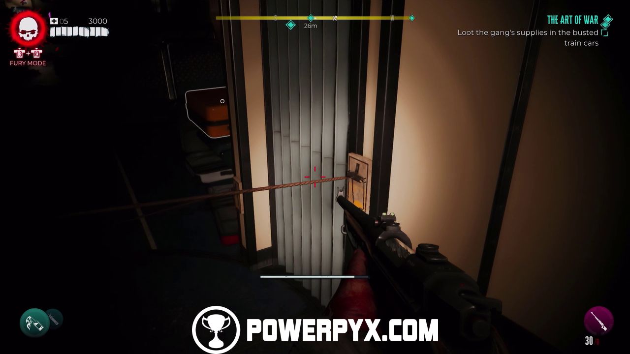 • Head through the tunnel to ransack the gang’s supplies in the train cars