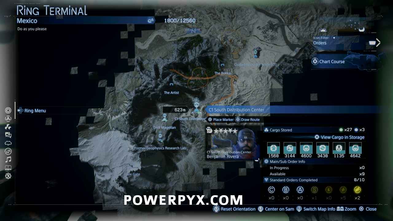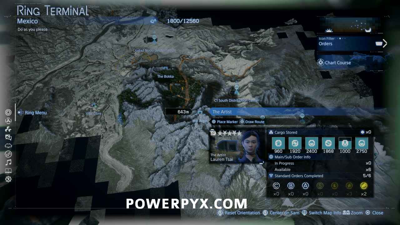 To reach level 5 you need to complete Sub Orber 124, which becomes available once you deliver enough to them to hit the cap about 80% toward level 5. They will tell you when you make the delivery that unlocks this that they have a sub order available. This order requires you to make your way around the entire map to pick up 7 XL sized items, one located in each of the enemy MULE areas, so you will want to make sure you have the road network complete and set yourself up with a vehicle and a number of weapons to bring with you. Going counterclockwise around the map starting with the Coffin Board to reach the farther apart areas more quickly, then switching to an Offroader on the north side of the map will allow you to complete this in around 35 minutes out of the 50 minute time limit (you must finish under 45 minutes for the highest rank, but this isn’t required when completing it for maximum connection level). You can have the DHV Magellan sitting at Heartman’s Lab with the vehicle waiting for you to pick up, and swap to it when you are going through the MULE areas between Heartman’s Lab and The Pizza Chef.
