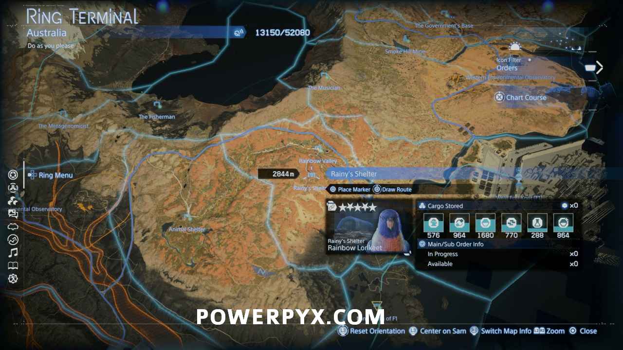 When Main Orders or Sub Orders are required to unlock a facility, the starting location of the order is listed along with any other important information.