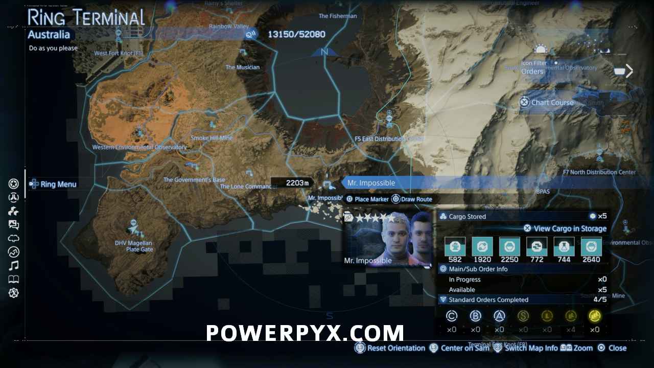 To connect Mr. Impossible you will have to pick up lost cargo for them. There is only a handful of lost cargo items available for them throughout the game, typically in hard to reach places. The closest lost cargo item can be found on the cliffs around the Tar Lake directly north of their location. Two other locations are on top of the mountain peak near The Aeronautical Engineer, and on a small island off the west side of the bridge by F8 Terminal Fort Knot. After you bring them one item they will post a Sub Order you can complete to retrieve items that will convince them to connect.
