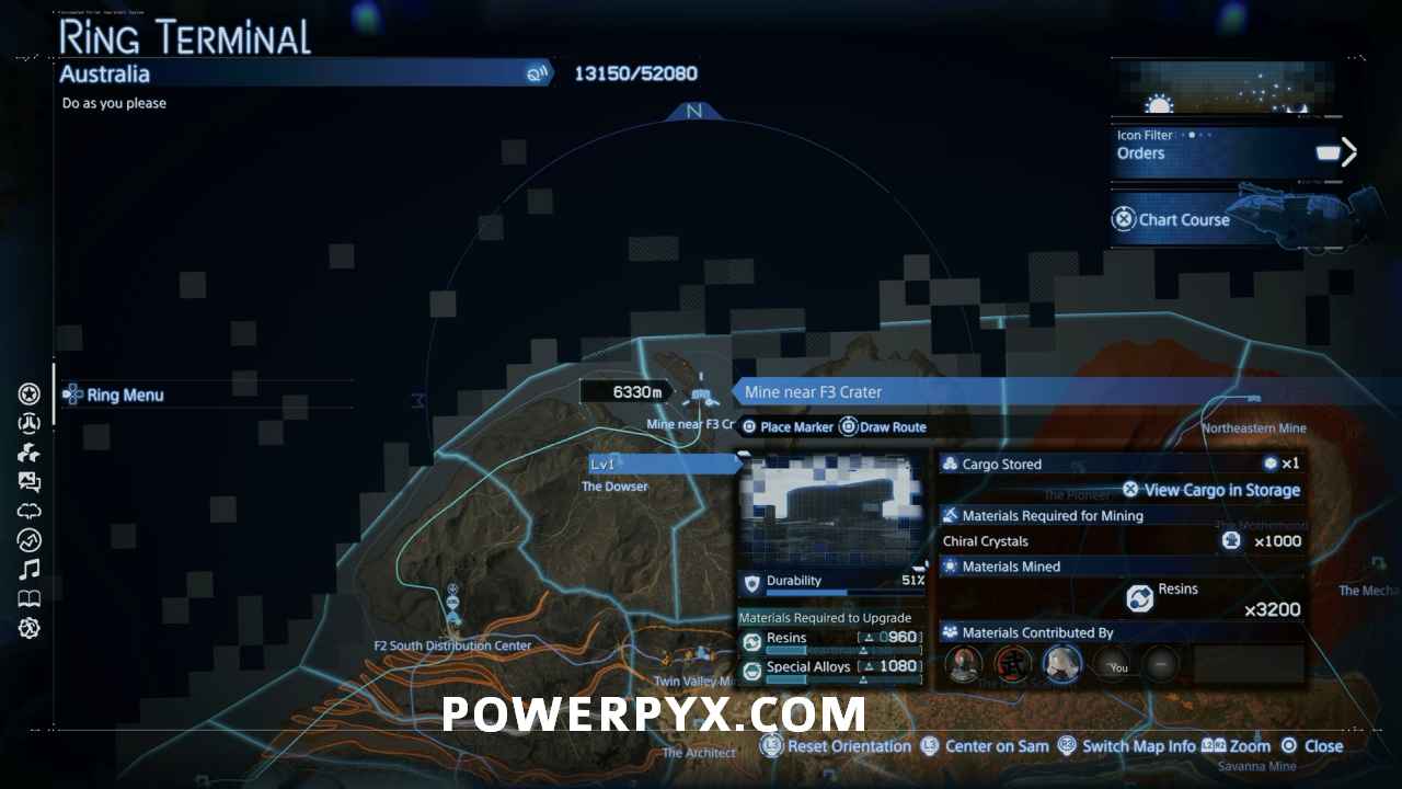 Mines allow you to use Chiral Crystals to mine for the various other materials, giving an easy way to obtain large amounts of materials instead of waiting for them to replenish at Facilities or picking them up in MULE areas. Facilities and Mines connected to the monorail lines also allow you to transport large amounts of these materials or other cargo quickly between monorail stops. Because of this it is recommended you repair all monorail lines and mines past the number required for each of the trophies. Online player contributions contribute toward the repairs, so you aren’t required to contribute the full number of materials yourself unless you are playing completely offline.