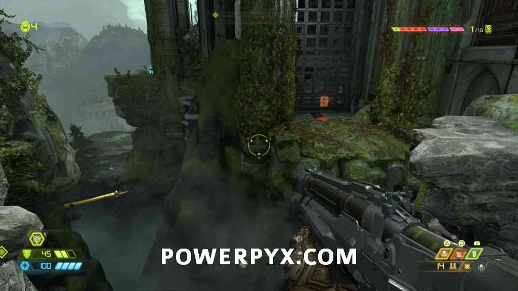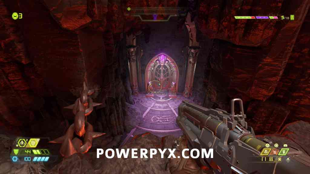 Slayer Gate #1 + Empyrean Key #1 – From where you found the Slayer Key you can jump off the platform to the purple gate to open it (Slayer Gate). Finish the enemy encounter and it will spawn you the Empyrean Key. Find all six keys in Doom Eternal to unlock the Maykr Device in the Fortress of Doom (Hub Area), which unlocks Unmaykr.