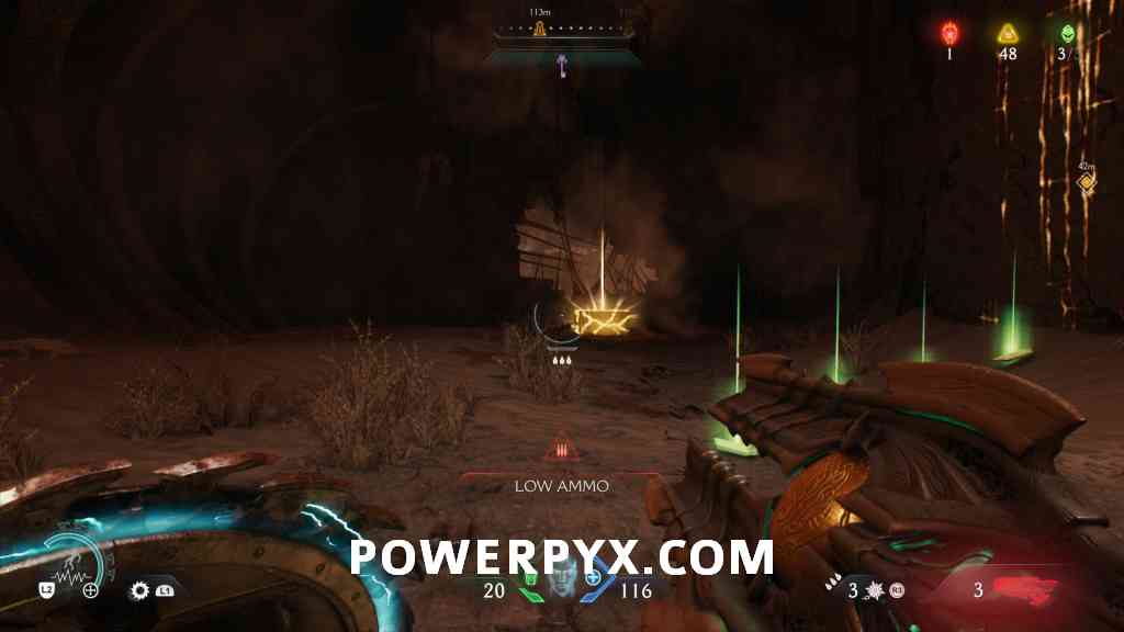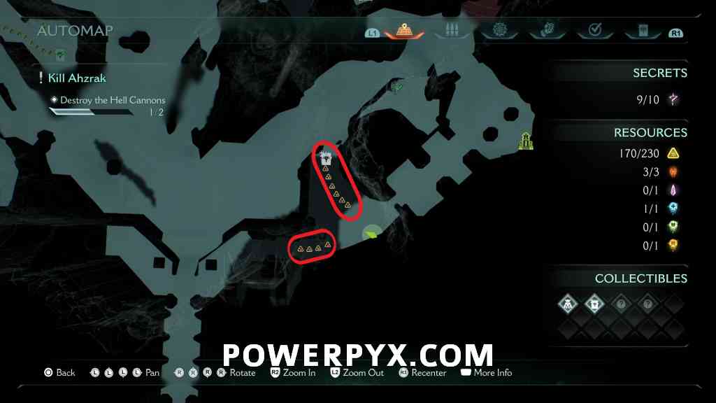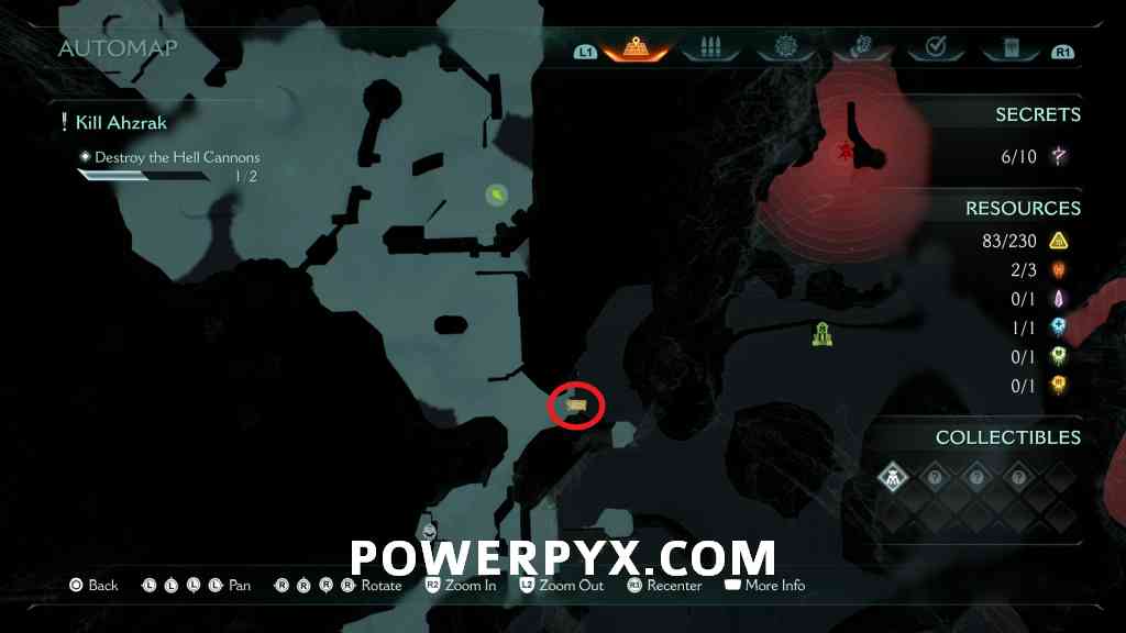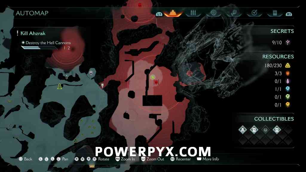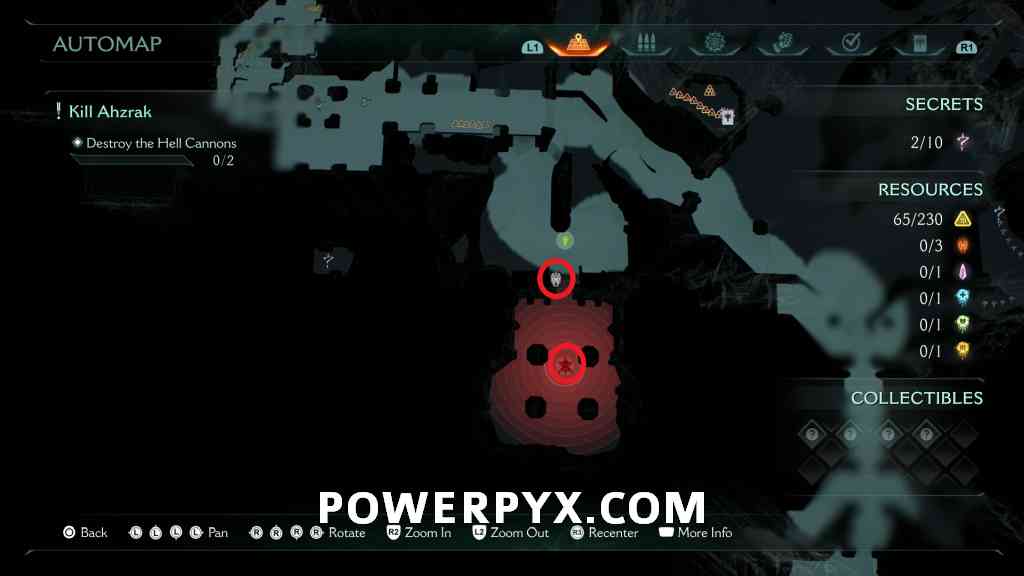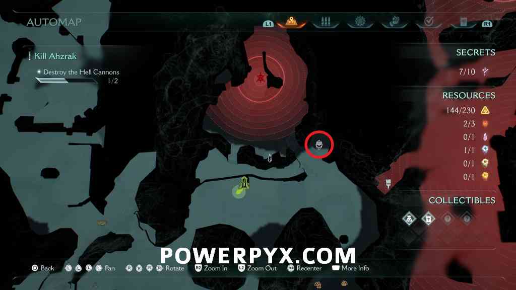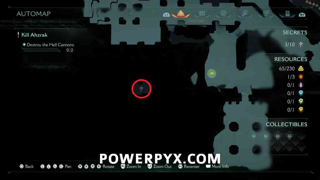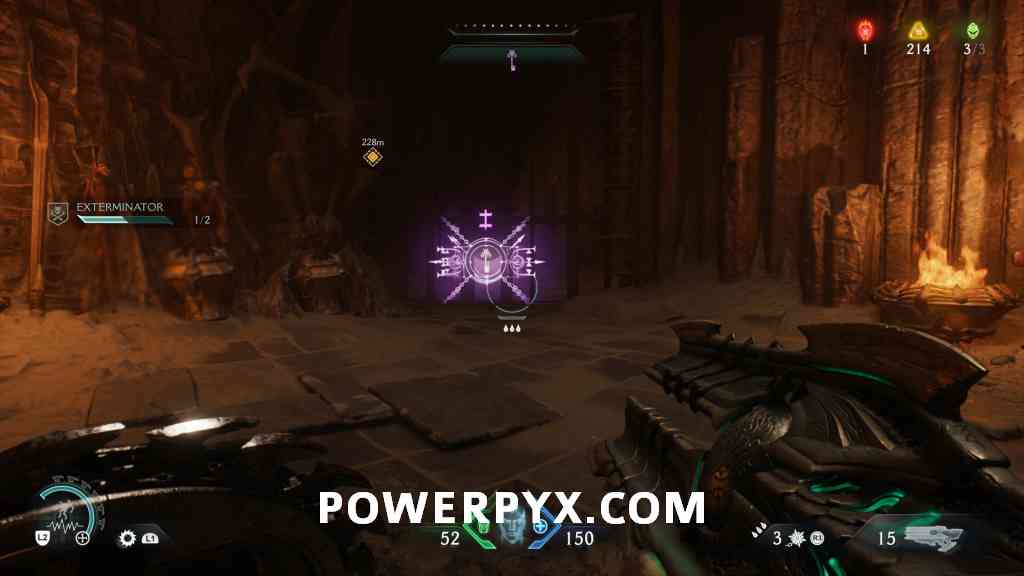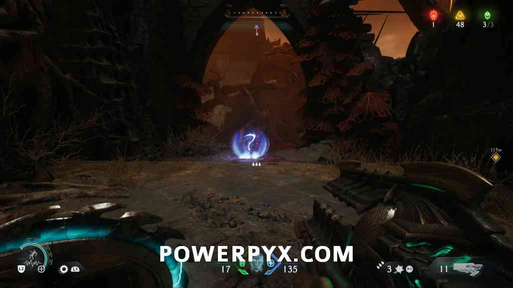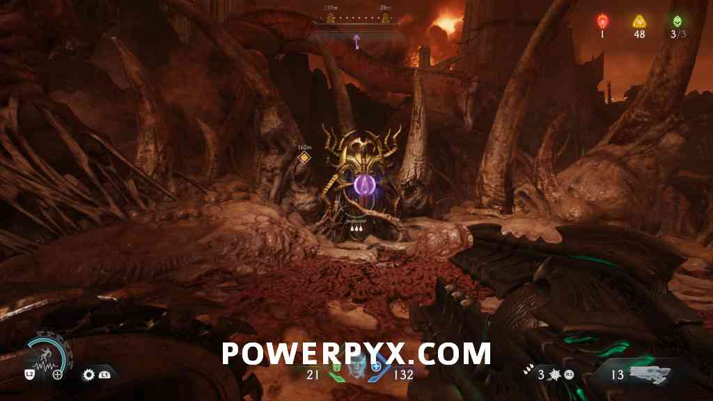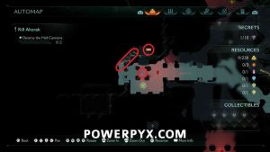 Continue forward into the next red combat encounter, near the second Hell Cannon. Automatic reward from defeating the Mancubus miniboss in this encounter. GLITCH WARNING: Don’t restart Checkpoint after getting this, as it will respawn the boss but when you kill it again the map counter for this collectible doesn’t update (even in the chapter rewards screen it remains at 0/1).